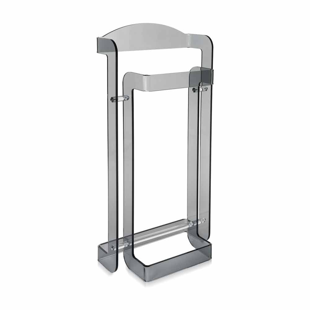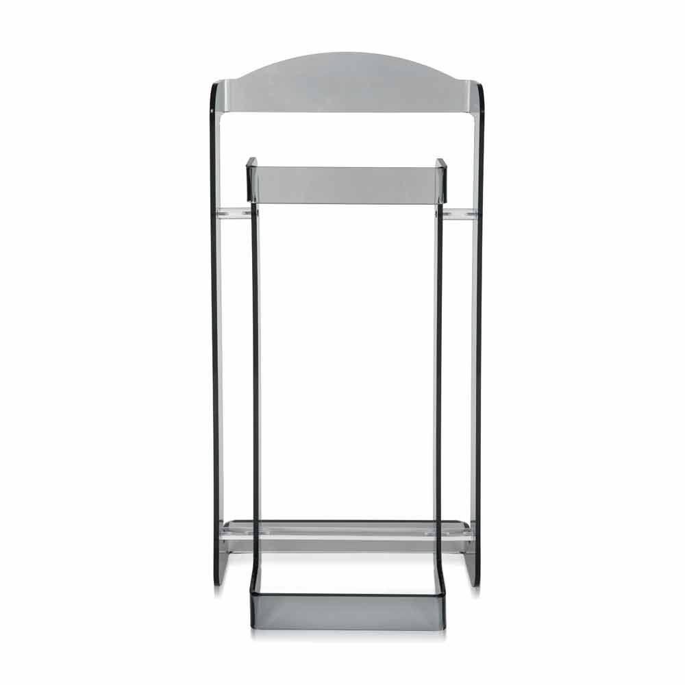 Moderner Design-Diener in Mose Plexiglas, hergestellt in Italien Ein unentbehrliches Objekt für Praktikabilität und Ordnung im Schlafzimmer: Der Mosè Fumé Valet ist eine diskrete Präsenz, die sich jedem Einrichtungsstil anpasst. Das PMMA Plexiglas aus reinem Polymer ist ungiftig, hypoallergen, geruchlos und antibakteriell. Plexiglas ist stoßfest, nicht verformbar, unveränderbar und wärmeisolierend. 100% recycelbar. Entspricht UNI EN 71-3: 200. Entworfen, entworfen und hergestellt in Italien, mit italienischen Materialien.