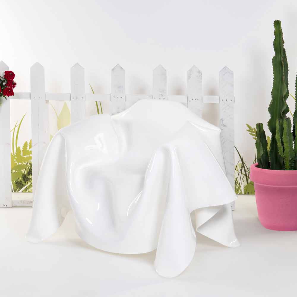 Moderner Design-Sessel aus weißem Plexiglas Paris, hergestellt in Italien Der Pariser Sessel mit Drapierung ist ein Unikat, ein Werk moderner Kunst. Aus einer Platte aus reinem 100% reinem Polymer aus PMMA Plexiglas von milchigem Weiß, komplett von Hand drapiert, entsteht ein einzigartiger und unwiederholbarer Sessel. Der Sessel ist völlig selbsttragend und bietet Platz für 1 Person. Die physikalisch-technischen Eigenschaften von Plexiglas (stoßfest, nicht verformbar, unveränderlich, wärmeisolierend) machen diesen Artikel zu einem praktischen und funktionellen Möbelstück, das für jede Umgebung geeignet ist. Die Helligkeit und Helligkeit werden über die Zeit konstant und unverändert beibehalten. Das PMMA Plexiglas aus reinem Polymer ist ungiftig, hypoallergen, geruchlos und antibakteriell. 100% recycelbar. Entworfen, entworfen und hergestellt in Italien, mit italienischen Materialien.