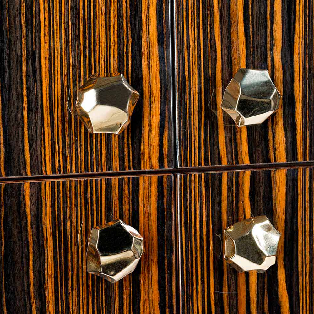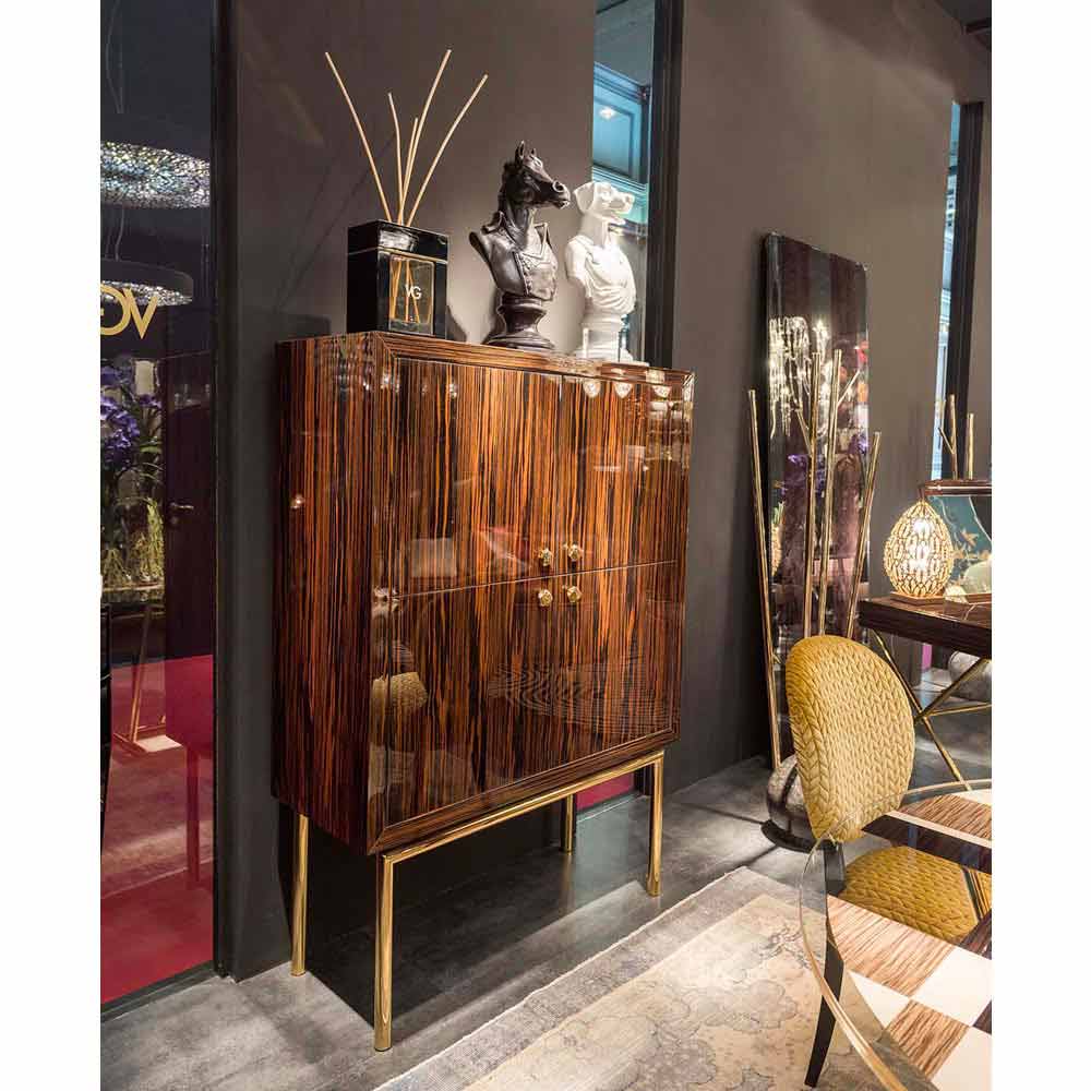 Moderner Designschrank Ada mit 4 Türen, aus Ebenholz, glänzendes Finish. Moderne Designkommode für eine edle und exklusive Einrichtung. Ada ist Teil der Original Sin Kollektion des Designers Giorgio Ragazzini. Seine Struktur besteht aus glänzendem Ebenholz, 45°-Verbindung, mit gebürsteten glänzenden 20-Zoll-Kanten und einer Rückseite wie die Vorderseite. Der Innenraum ist matt lackiert, mit einer verspiegelten Rückseite und einem strukturellen Regal (plus zwei Glasböden im Lieferumfang enthalten), Salice-Scharnieren mit Soft-Close. Front mit Griff aus Messing schmelzen, Goldfarbe. Basis aus glänzend 24 Karat vergoldetem Metall. Ada-Schrank ist auch in der weißen Perlmutt-Version erhältlich: Fordern Sie ein Angebot an unter info@viadurini.co.uk.