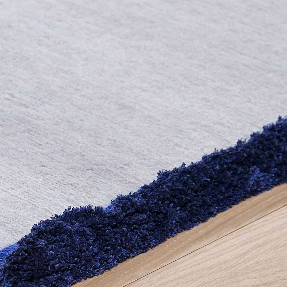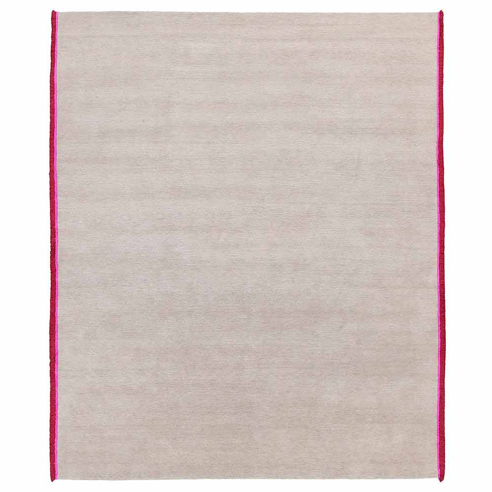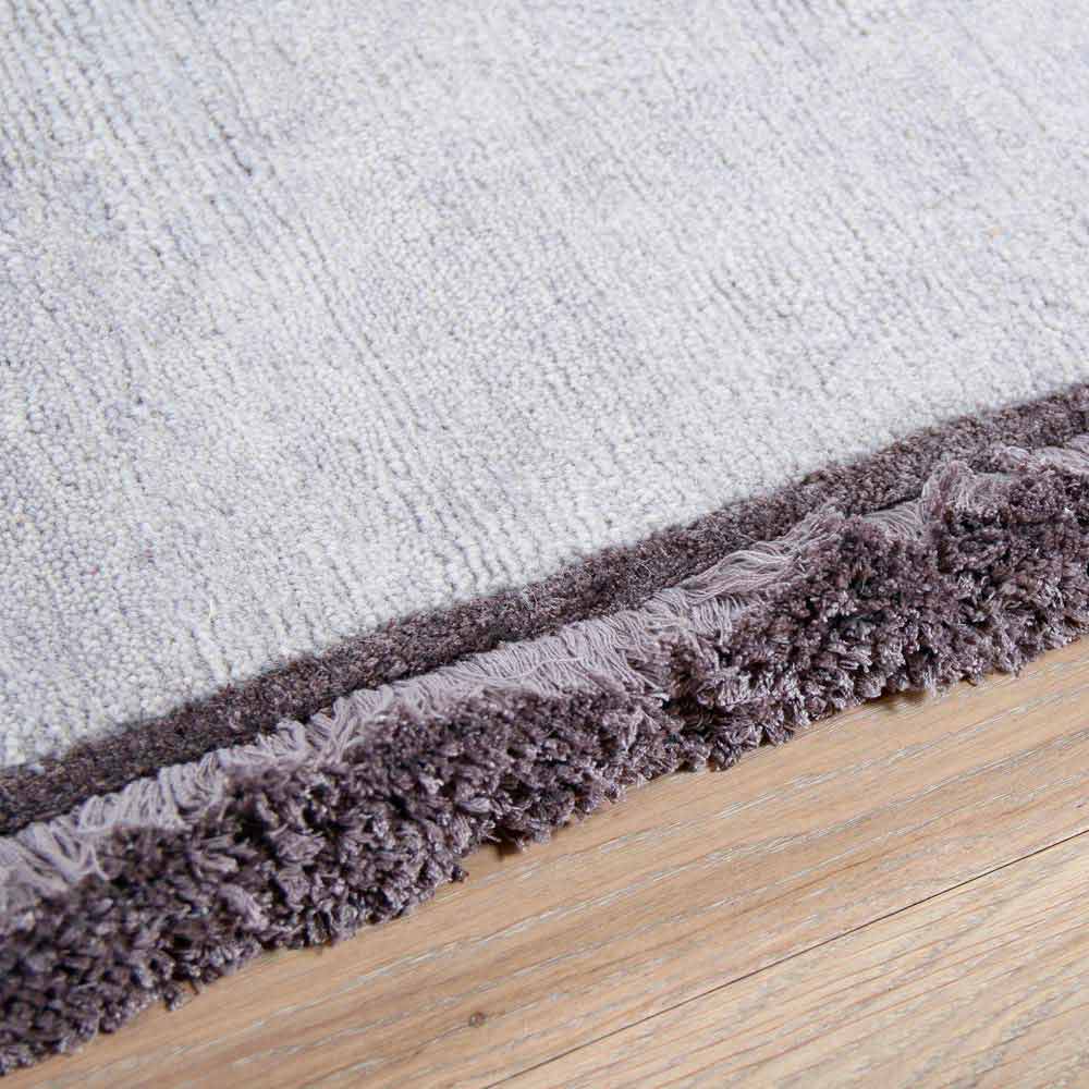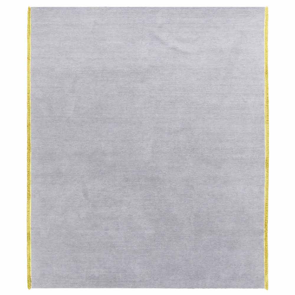 Modernes Design Teppich in zwei Dimensionen in Wolle und Baumwolle mit farbigem Rand in Seidenfransen erhältlich.