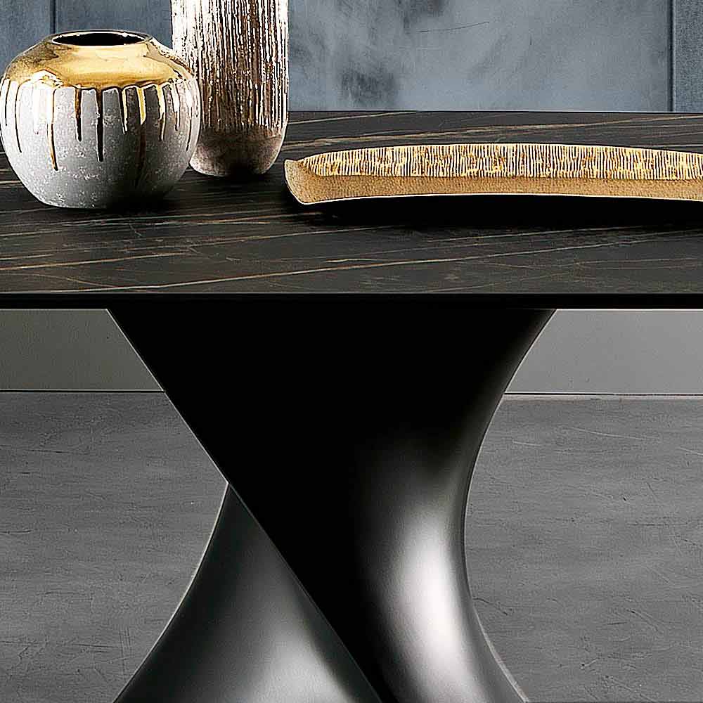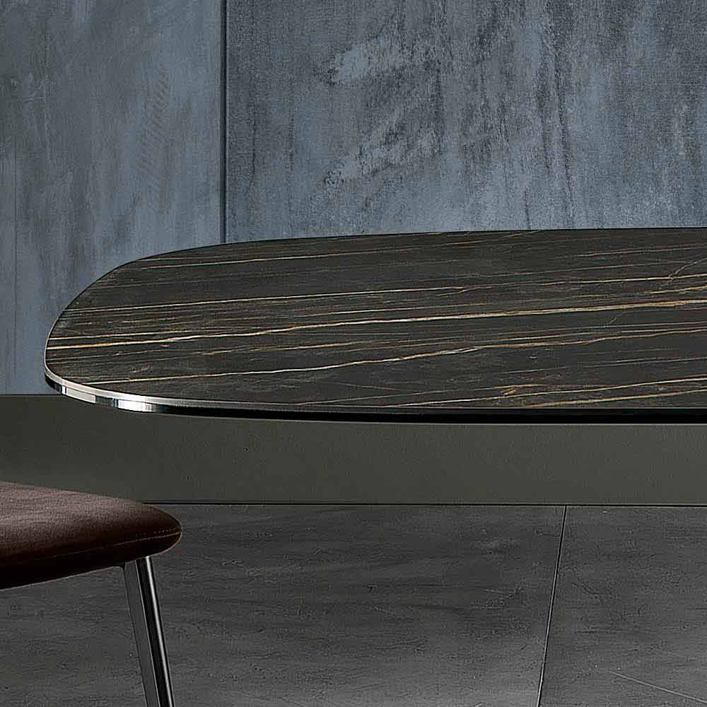 Clark ist ein in Italien hergestellter fester Tisch mit einer ovalen Oberfläche aus Glaskeramik und einem Polyurethansockel. Verfügbar in verschiedenen Ausführungen: Basis :