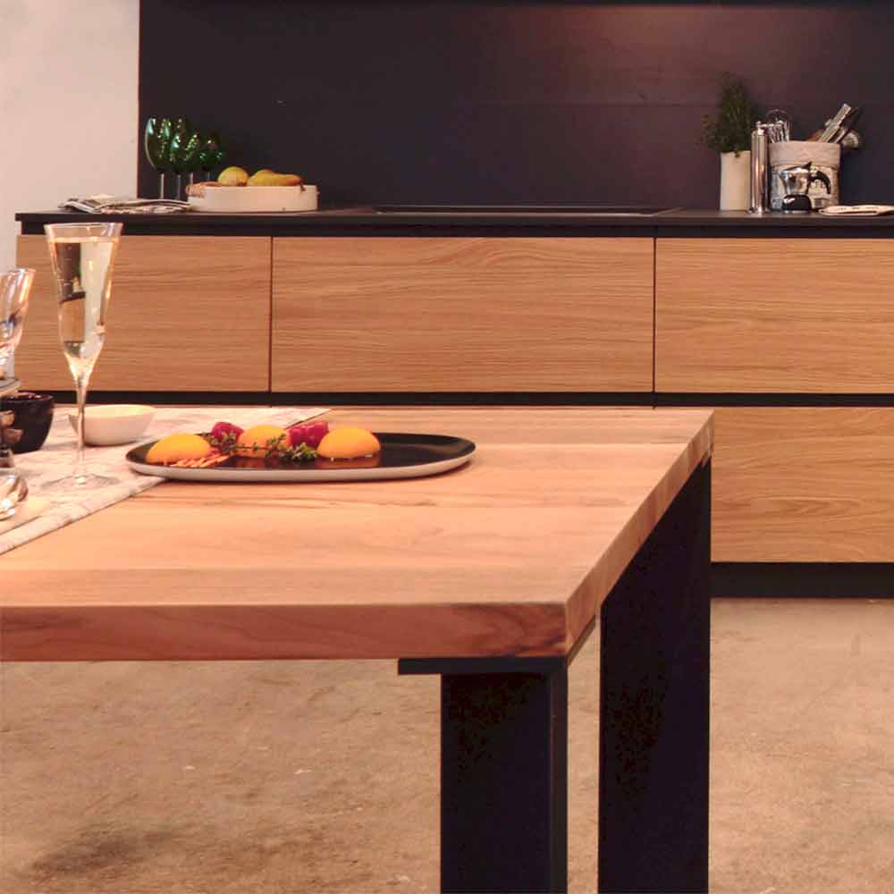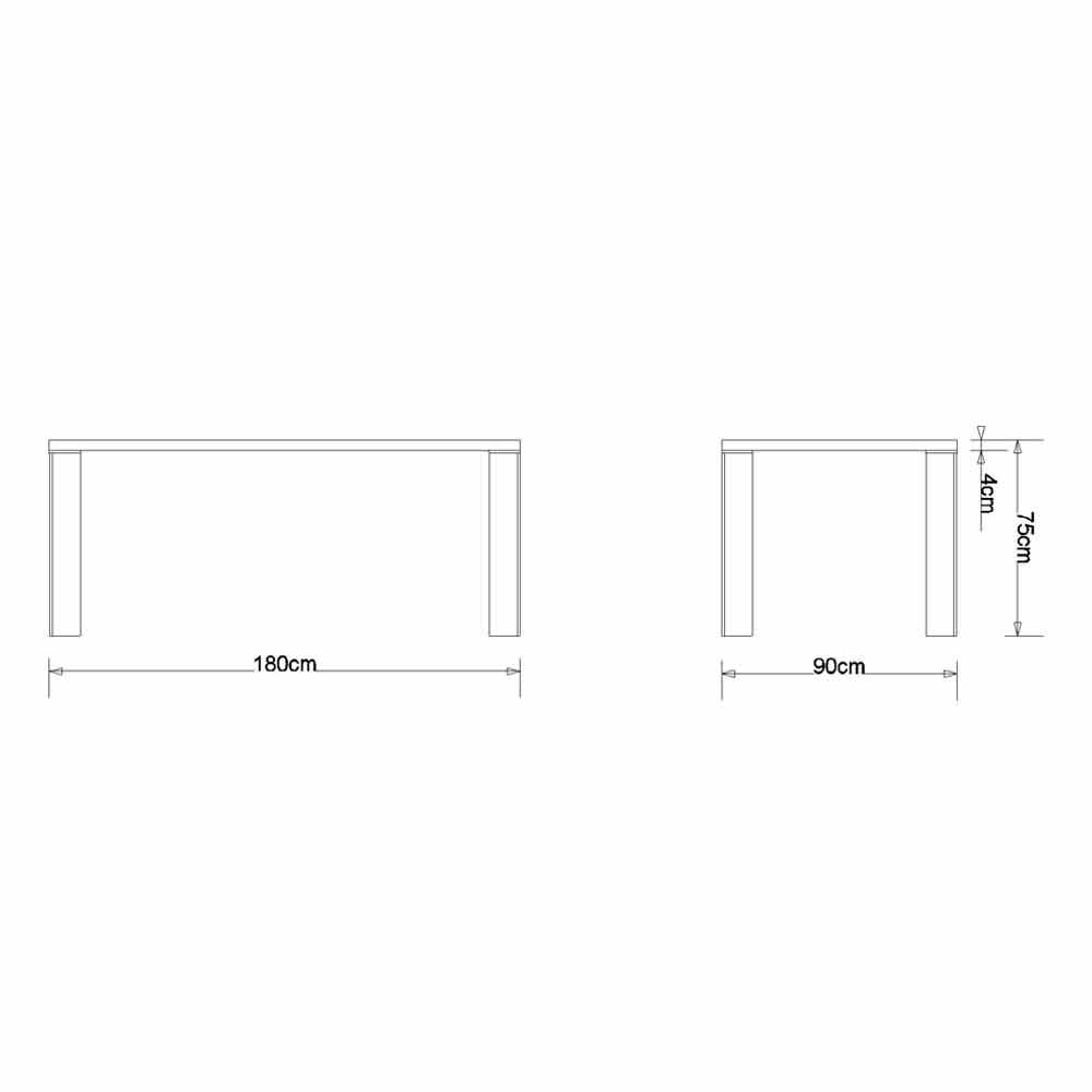 4 cm dicke Eiche Beine: Anthrazit pulverbeschichtetes Metall Maß: L.180xP.90xH.75 cm