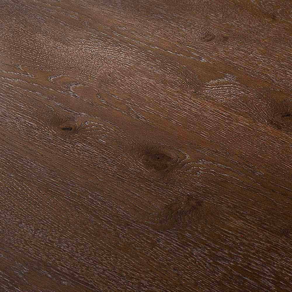 - Tischplatte aus Furnierholz mit Massiv Holzpartikeln und an den Längsseiten aus 35 mm dickem Eichenholz, thermobehandeltes Eichenholz verknotet.