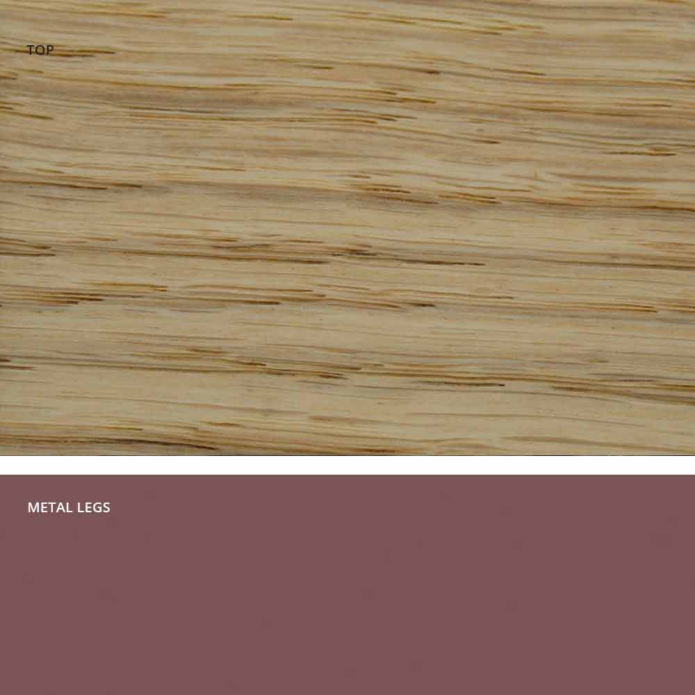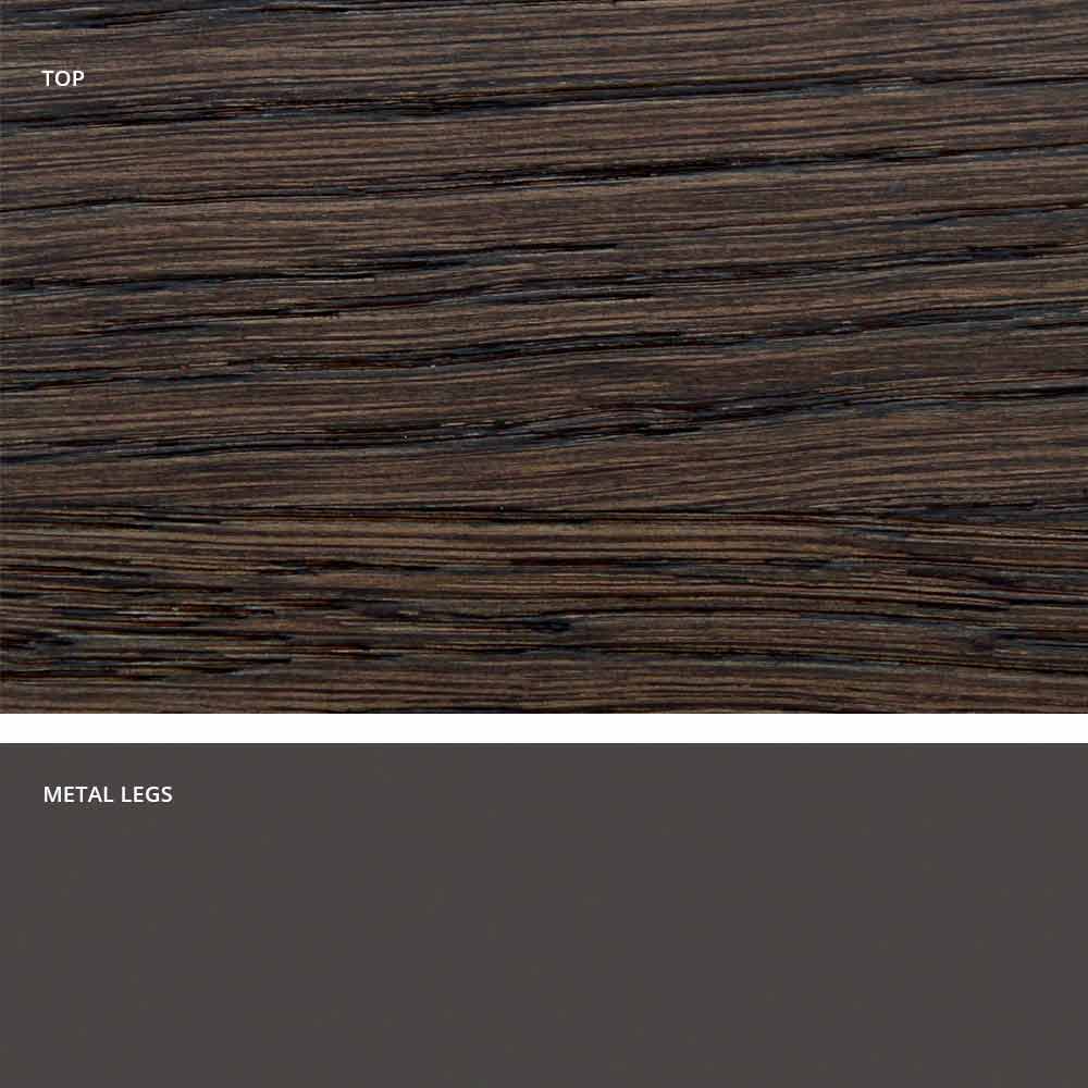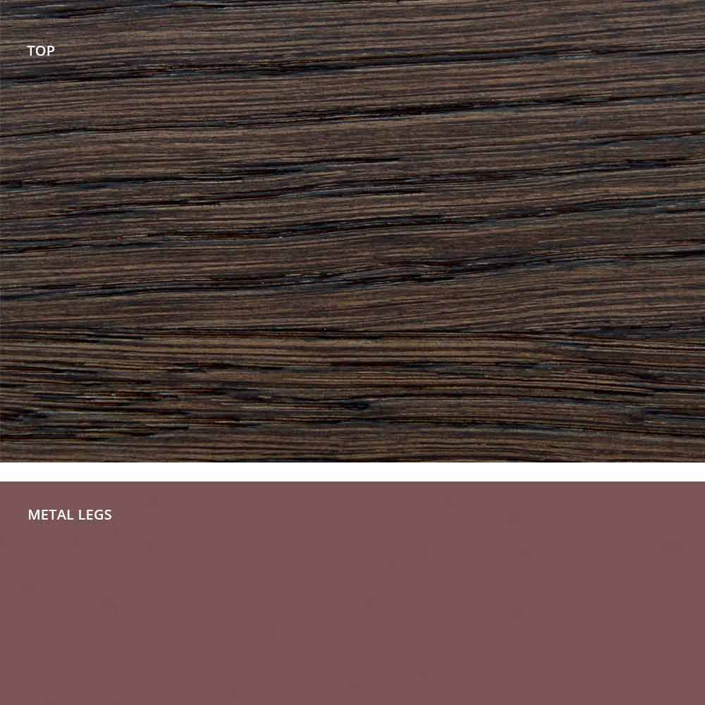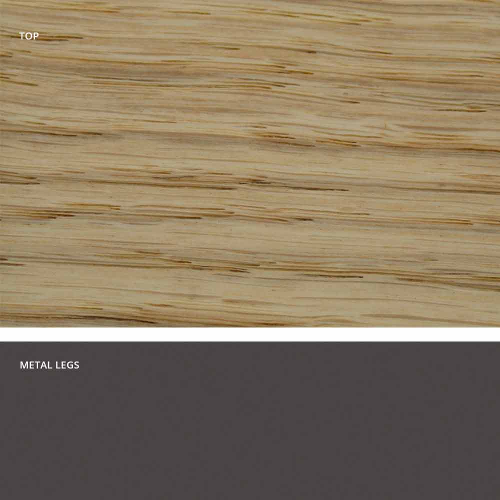 Mitia ist ein in Italien gefertigter Esstisch mit lackiertem Metallfuß und einer starken Tischplatte mit kleinen Partickeln aus Massivholz (Dicke 35 mm), die an den Längsseiten furniert ist.