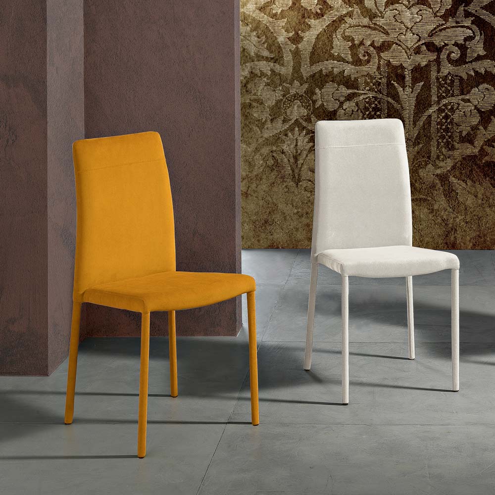 Porzia ist ein einfacher Wohnstuhl , der in Italien hergestellt wird und vollständig mit Dema-Stoff bezogen ist, der in verschiedenen Farben erhältlich ist: