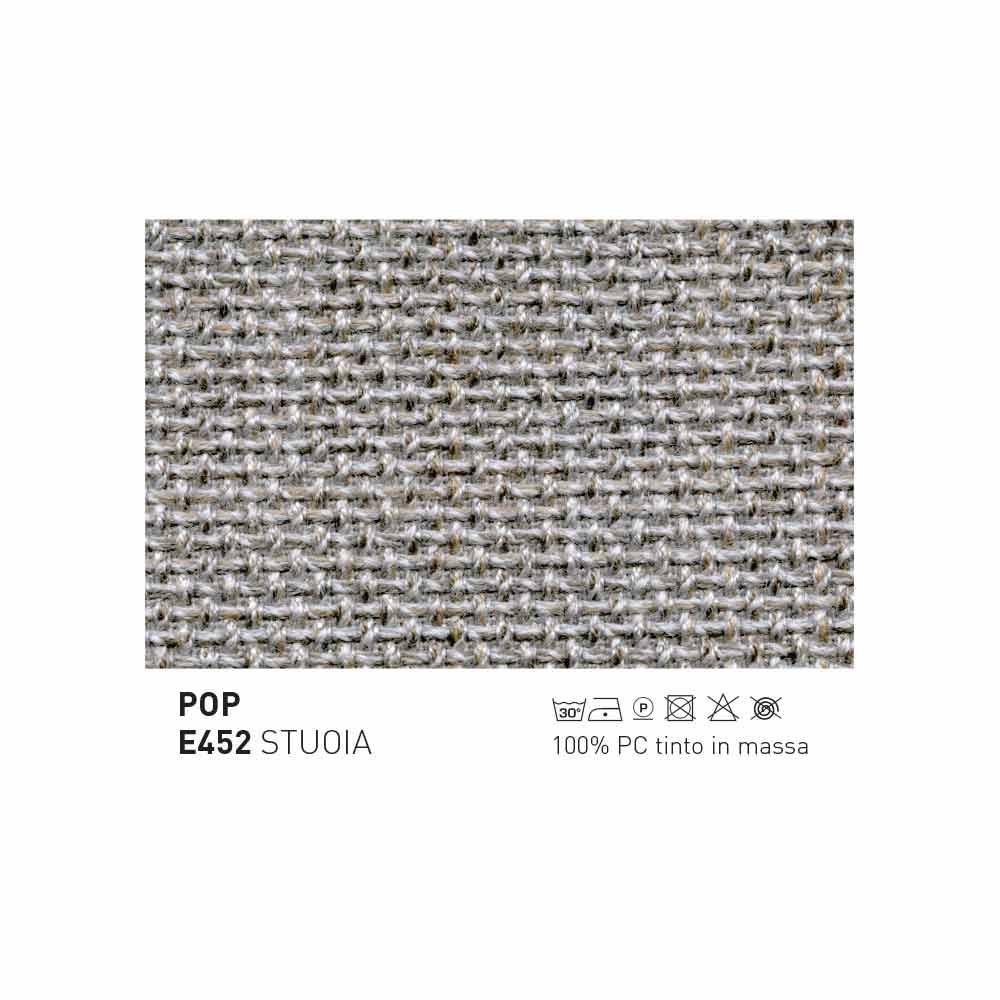 Die Beine sind aus massivem Irokoholz und die Sitzfläsche ist aus Stoff bezogen mit einer Sitzstruktur aus Polypropylen.