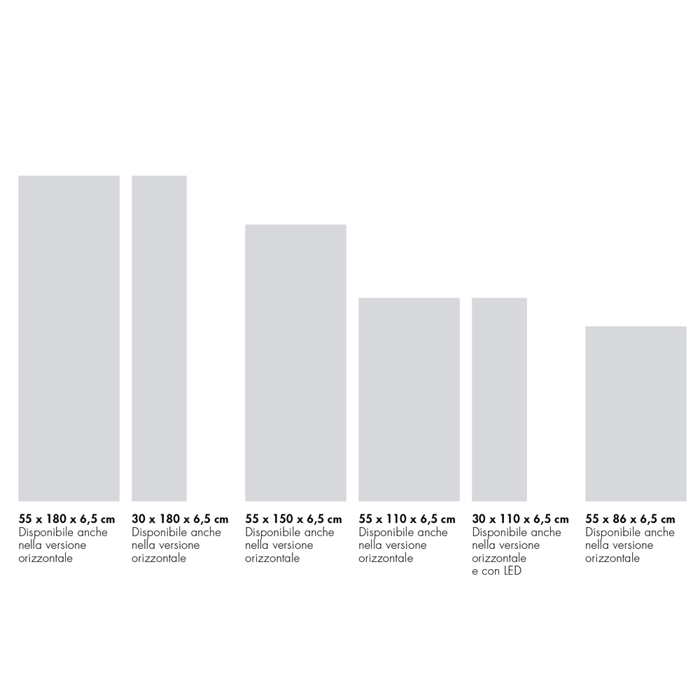 Design und Funktionalität zu vervollständigen. Es garantiert hohe Widerstandsfähigkeit, einfache Montage und Flexibilität bei der Einrichtung, da es in vertikalen und horizontalen Versionen mit 3 Technologietypen (elektrisch, hydronisch und hybrid) und einer