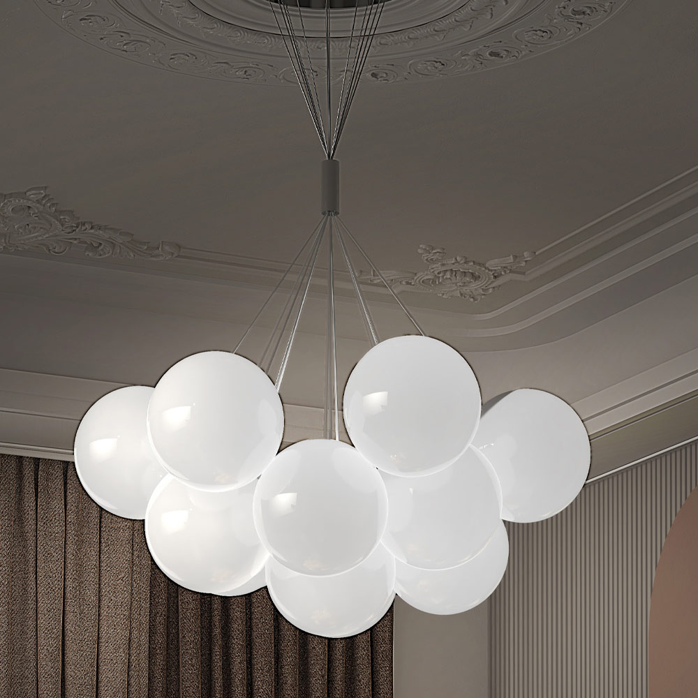 Ein Kunstwerk von imposanten Ausmaßen aus mundgeblasenem Überfangglas, ideal zum Füllen und Ausleuchten großer Räume wie Wohn- oder Esszimmer dank origineller Ästhetik und konkurrenzloser Qualität für ein exklusives und besonders elegantes Ergebnis.