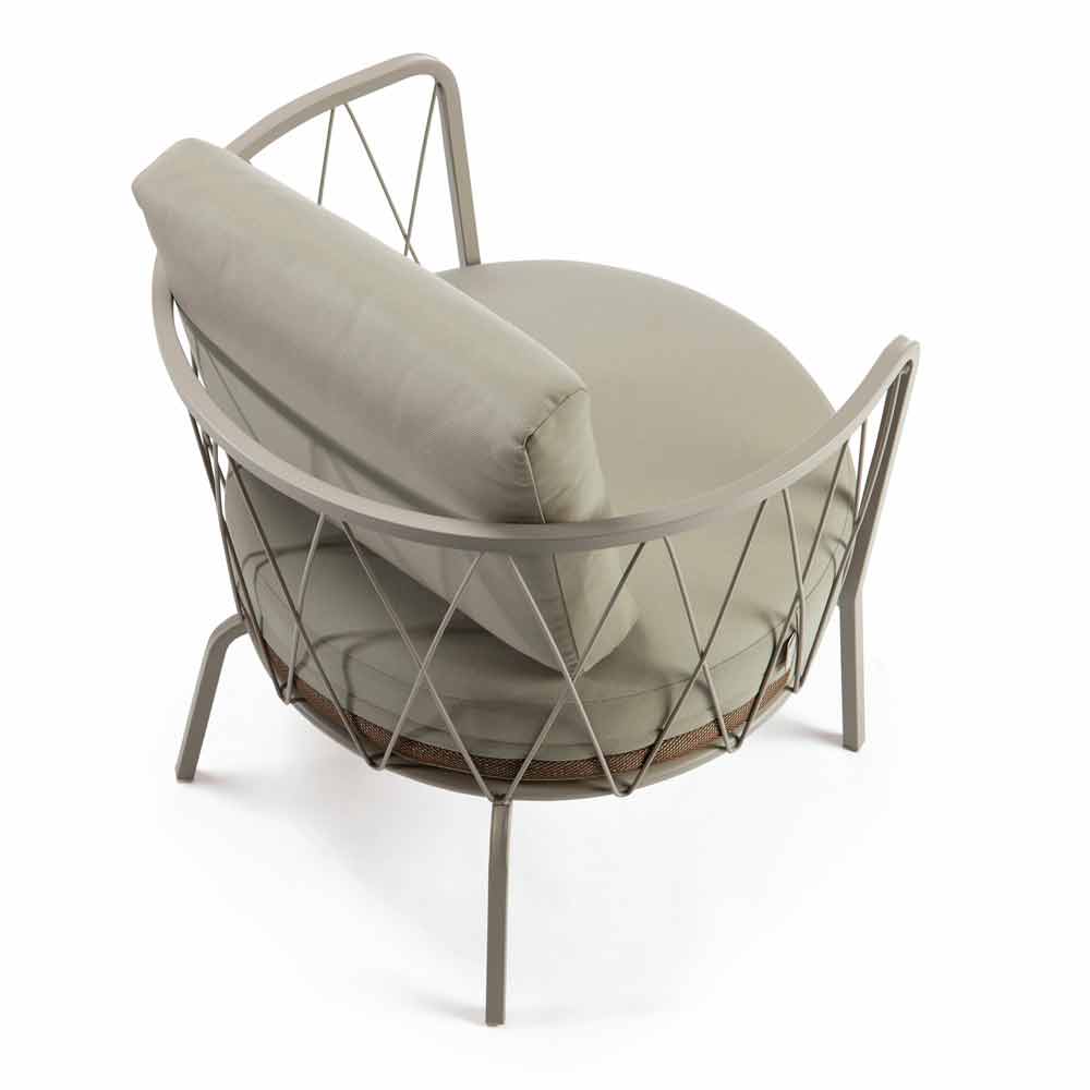 Designer-Outdoor-Sessel aus Stoff und pulverbeschichtetem verzinktem Eisen mit Kissen, Made in Italy.