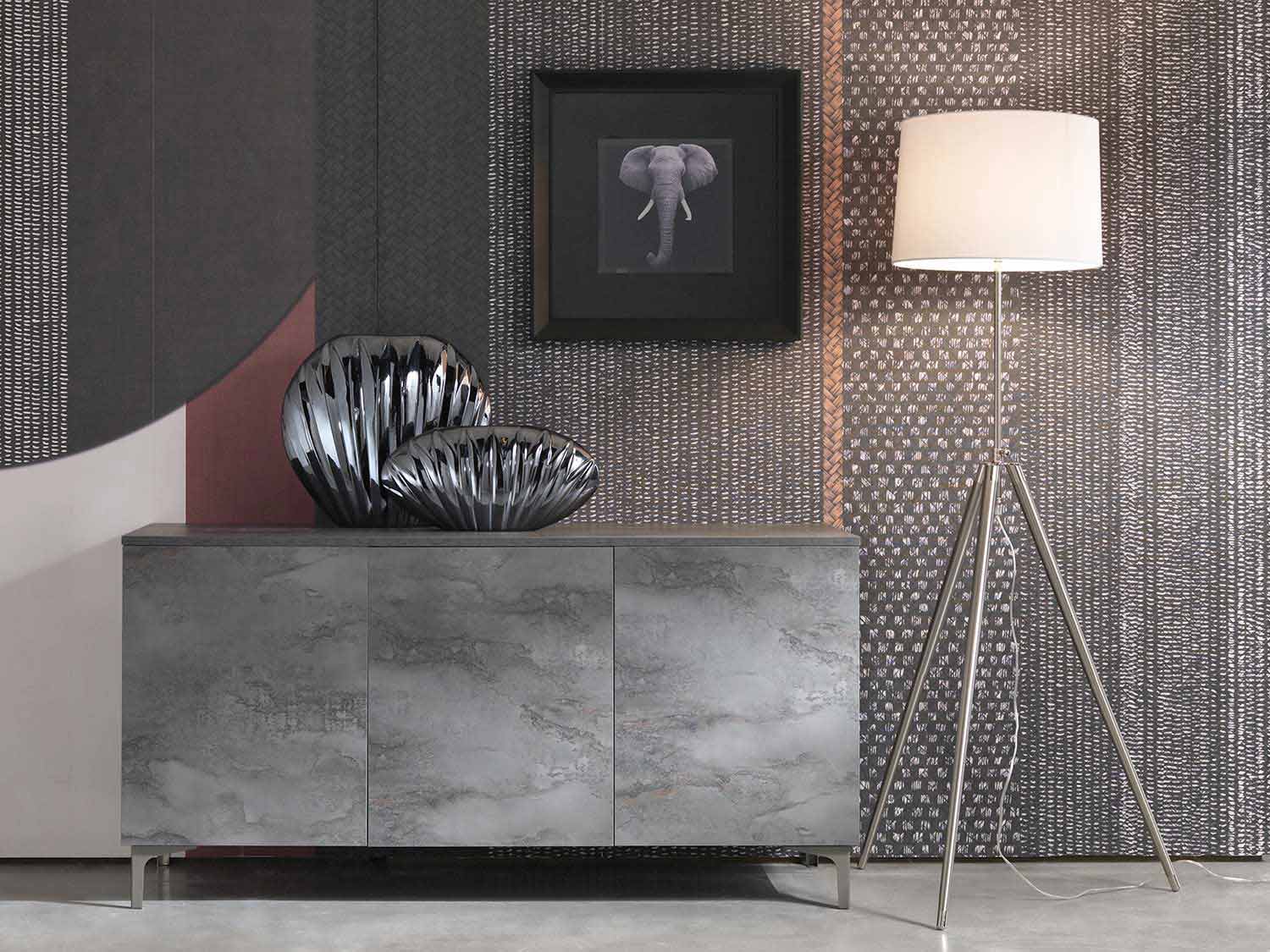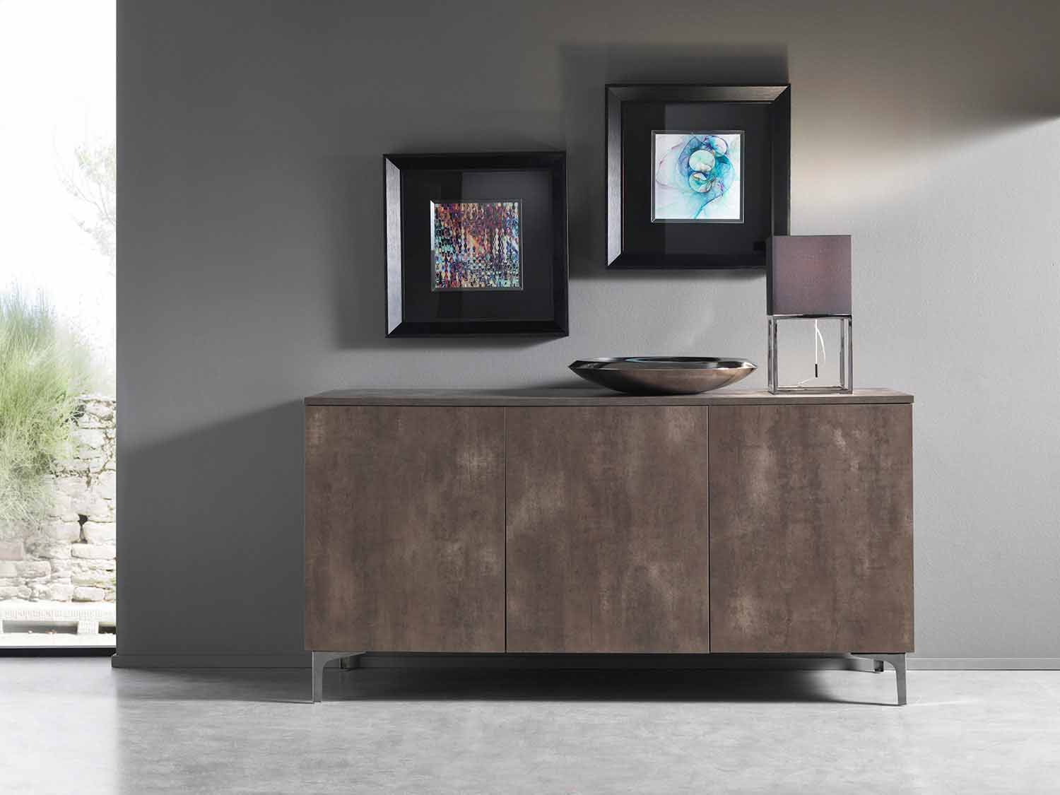 Wohnzimmerschrank mit drei Türen, modernes Design mit Bronze oder grauem Melaminholz made in Italy.