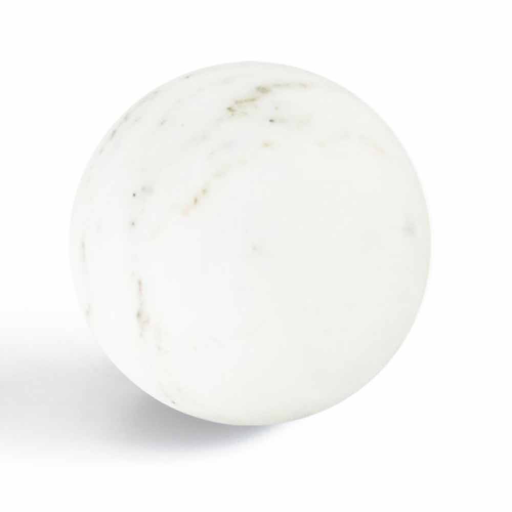 Innovativer und raffinierter Briefbeschwerer, gekennzeichnet durch das besondere Kugeldesign und den weißen Satinmarmor, aus dem er besteht. Es ist ein einzigartiges Stück, da sich jeder verwendete Marmorblock von den anderen in Maserungen und Schattierungen unterscheidet. Jedes Produkt wird von Fachleuten handgefertigt, die sich seit Generationen auf die Marmorverarbeitung spezialisiert haben.