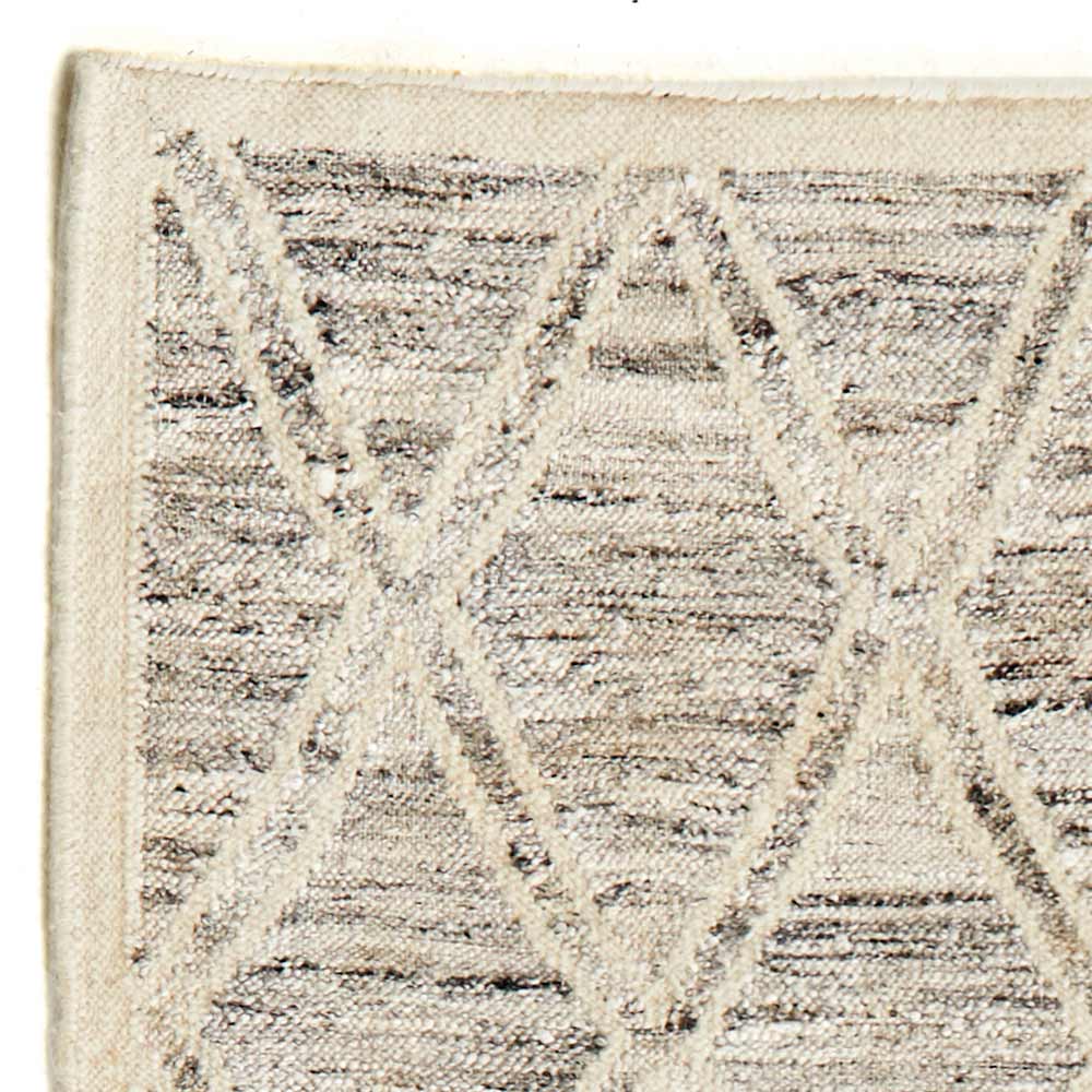 Dieser Teppich besteht aus Wolle und Baumwolle und wird als "Kelim" oder haarloser Teppich bezeichnet, der nicht geknotet, sondern von erfahrenen Webern handgewebt wird. Im Vergleich zu einem klassischen Teppich ist er leichter und weniger vollmundig und eignet sich aufgrund des besonderen geometrischen Musters , das ihn kennzeichnet, und der Farbgebung in neutralen Tönen , die ihn perfekt zum Kombinieren macht, perfekt als Dekorationsgegenstand, um das Erscheinungsbild des Raums zu bereichern jeder Möbelstil. Die Kombination der verwendeten Materialien und Techniken ermöglicht es, ein Endprodukt von hoher Qualität und großer visueller Wirkung zu erhalten.