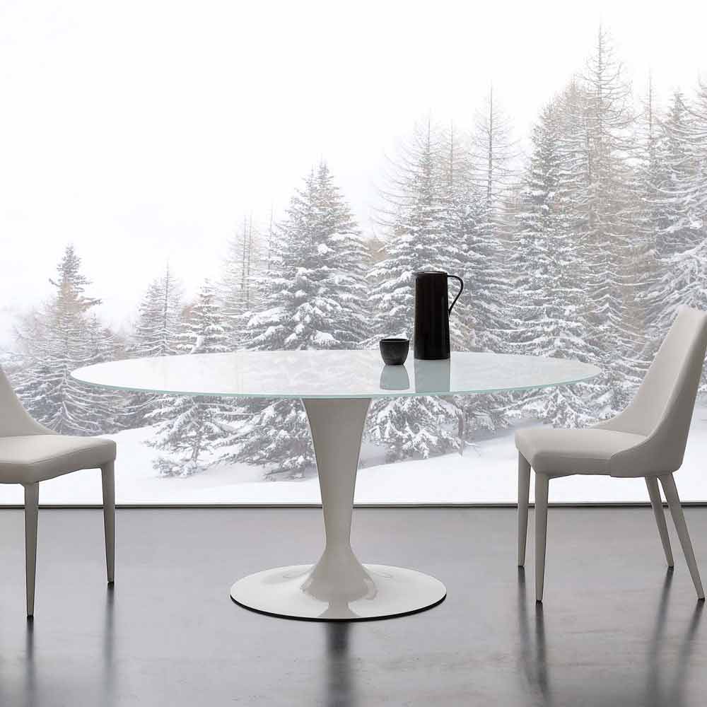 Moderner Tisch elliptisch aus Glas extraklar und Stahl Aurora