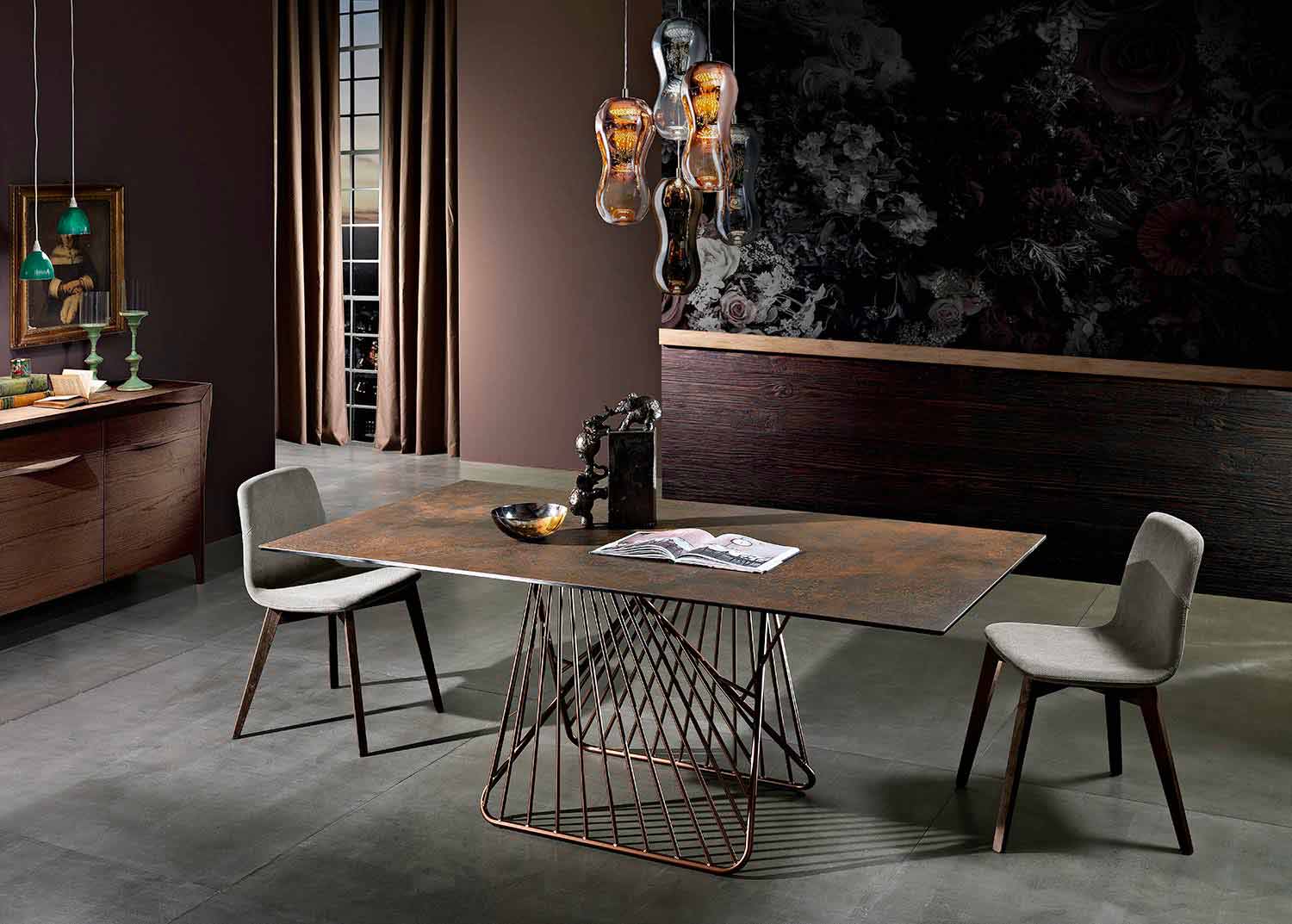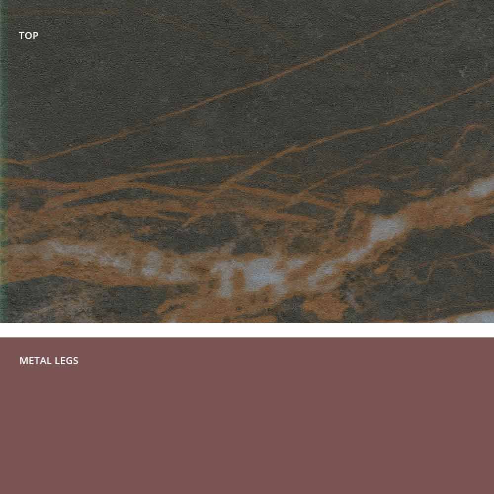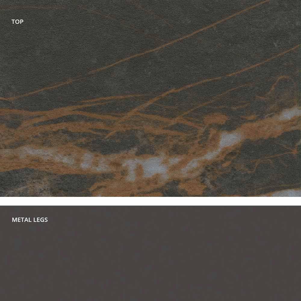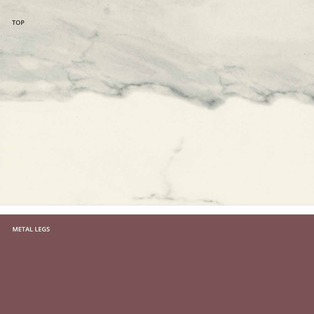Mitia ist ein fester Tisch aus Italien mit lackiertem Metallgestell und glaskeramischerOberfläche .