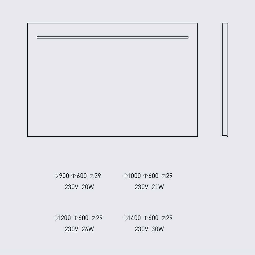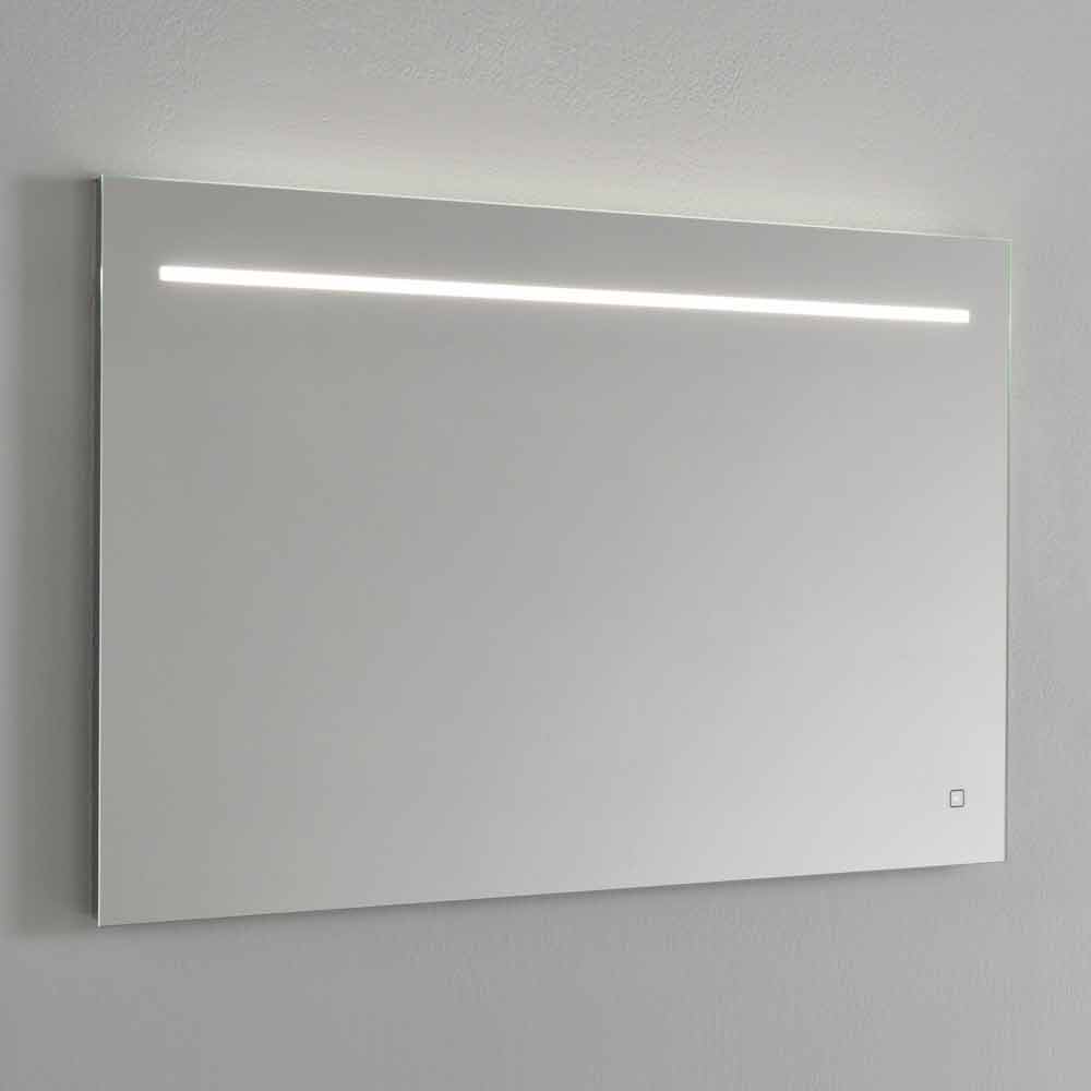 RechteckigerWandspiegel, handgefertigt in Italien mit hochwertigen Rohstoffen. Sie besteht aus einem Stahlrahmen und wird durch ein sandgestrahlten horizontales Band für den vorderen und oberen Ausgang des LED - Lichts aus, das über einen Berührungsschalter aktiviert werden kann. Sie können die Lichtfarbe zwischen warmweiß und naturweiß wählen.