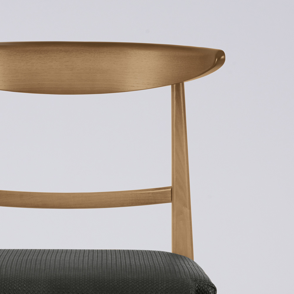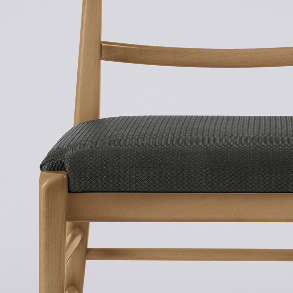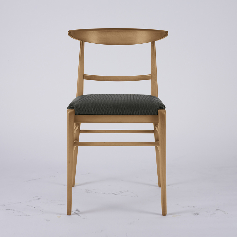 Holzstuhl mit Querstreben und Stoffsitz Made in Italy