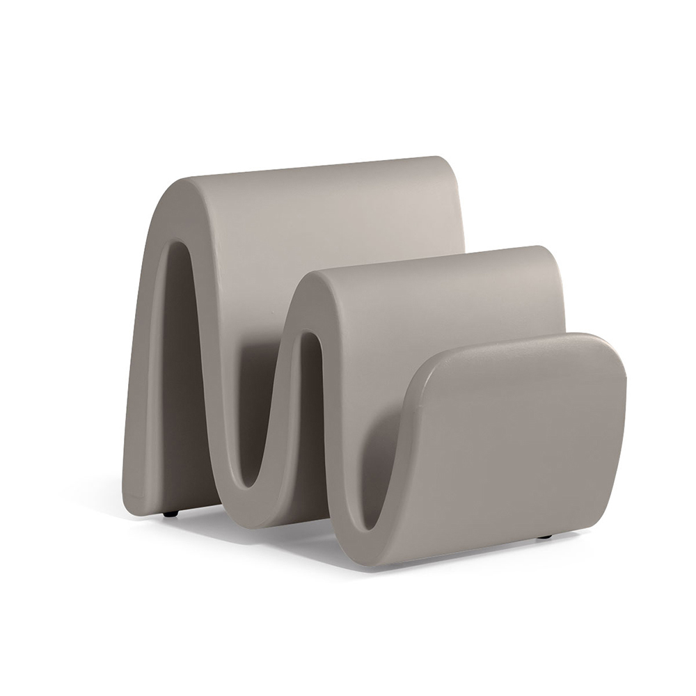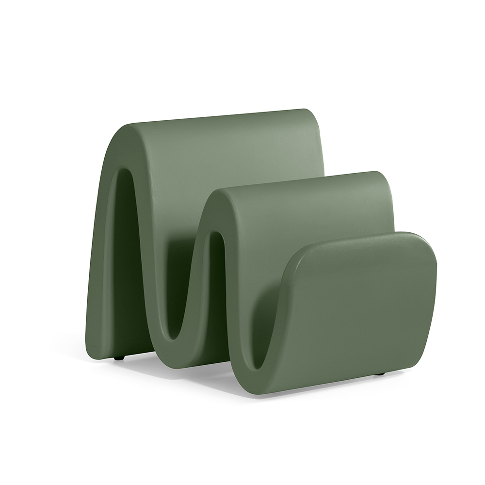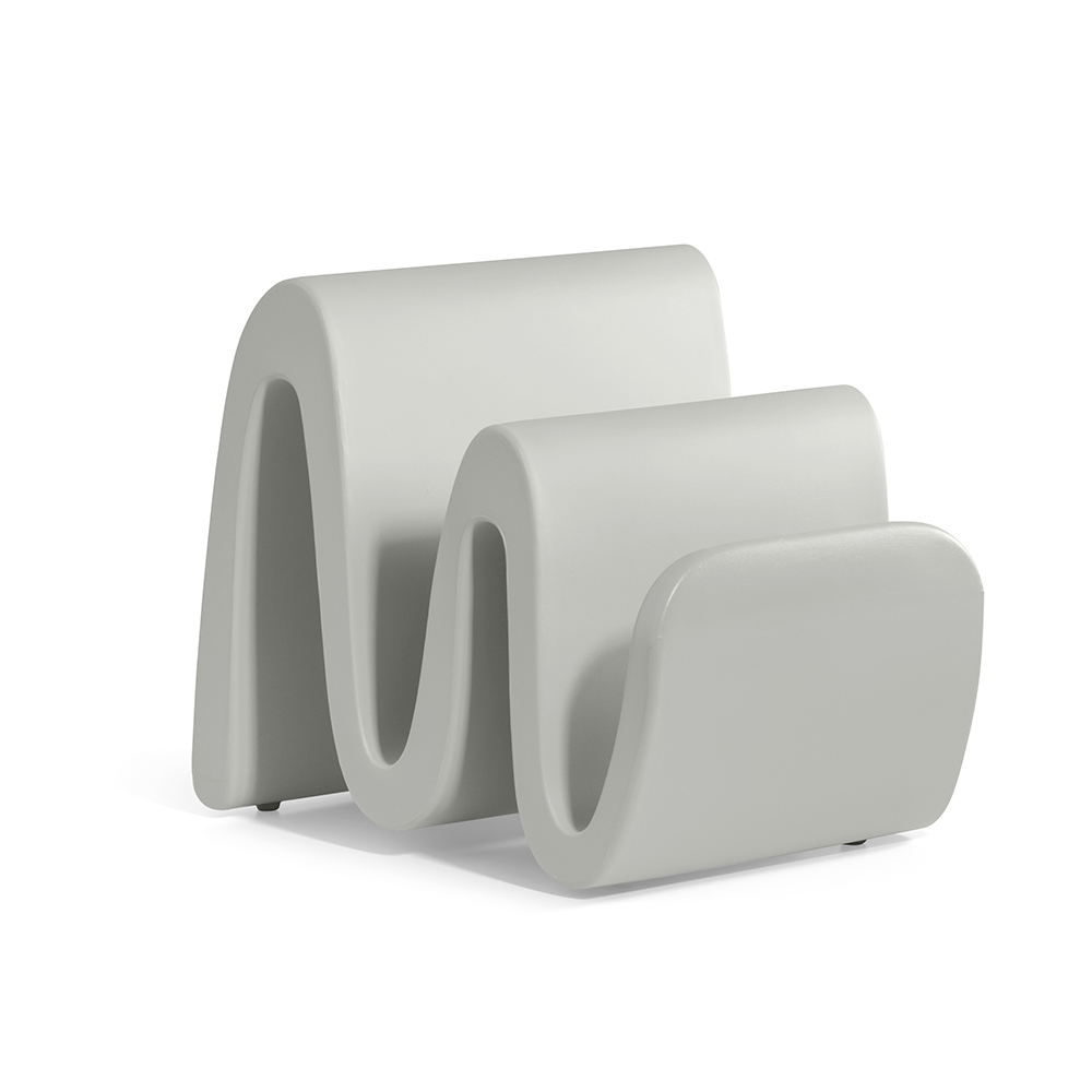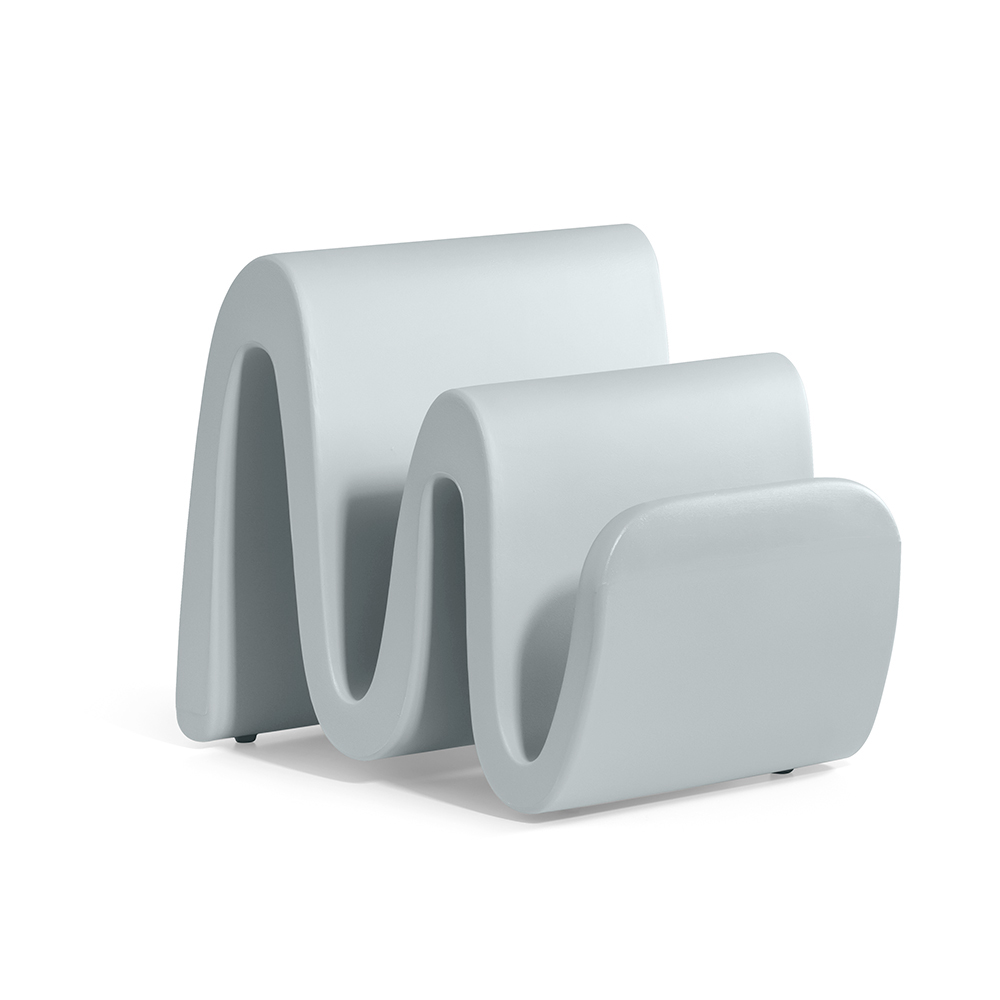 Dieser vollständig in Italien aus farbigem Polyethylen hergestellte Zeitschriftenständer zeichnet sich durch ein raffiniertes Design und eine besondere Form aus, die an eine kleine Welle erinnert. Dieser äußerst funktionale Zeitschriftenständer ist ein Einrichtungsgegenstand, der sich für jede Umgebung und jeden Innenraum eignet und durch seinen minimalistischen, aber zeitgenössischen und fesselnden Stil Aufmerksamkeit erregt.