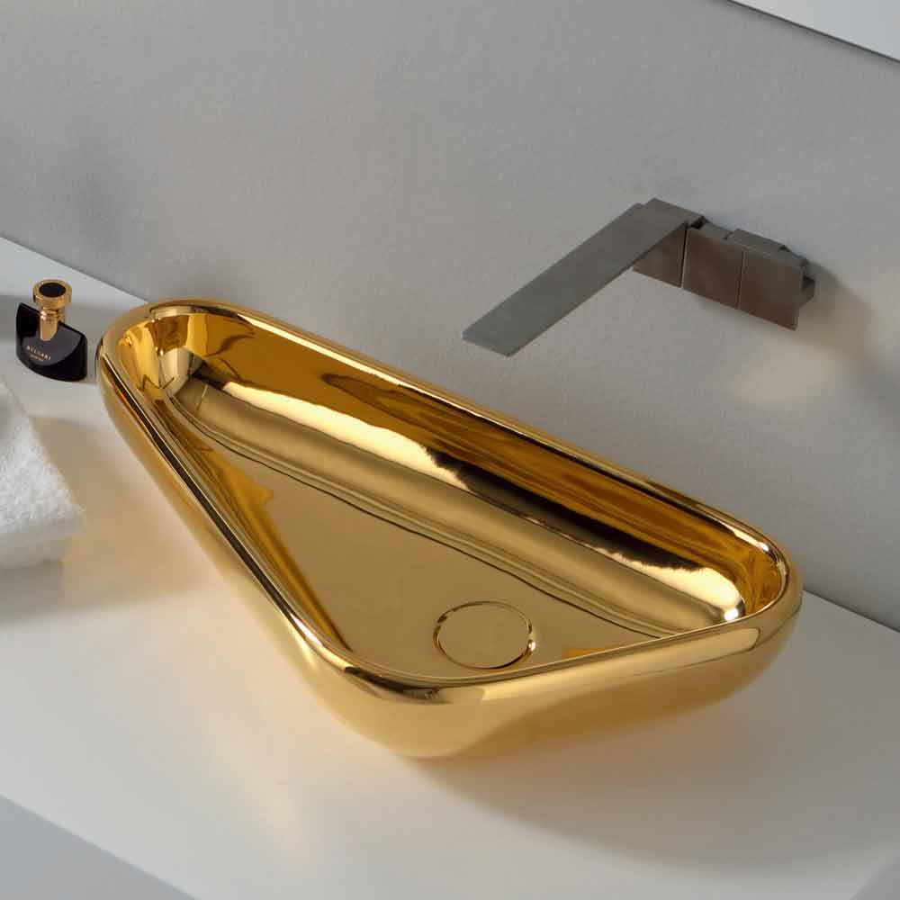 Sofia ist das Aufsatzwaschbecken, das in seiner Dreiecksform große Eleganz und modernes Design umschließt.