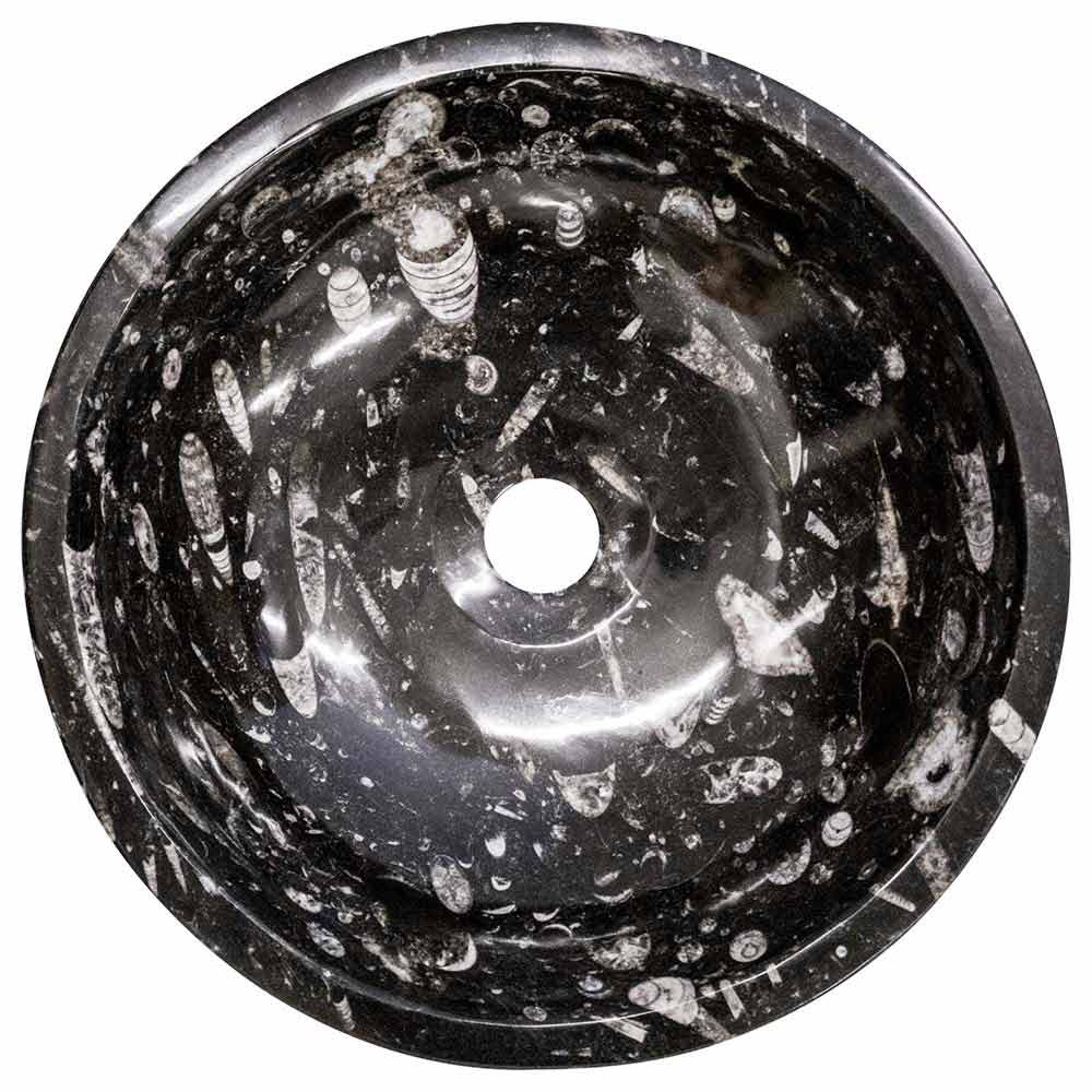 Design-Aufsatzwaschtisch aus Mable mit Fossilien, ein Unikat.