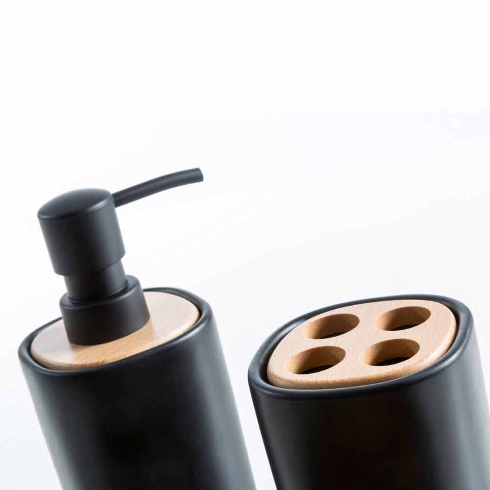 Badezimmer-Set mit modernen Accessoires aus Carsoli-Keramik und Holz