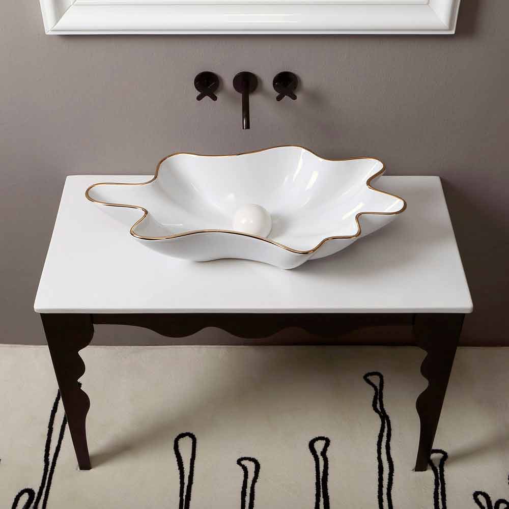 Aufsatzwaschbecken aus weißer Keramik mit goldenem Rand made in Italy Rayan