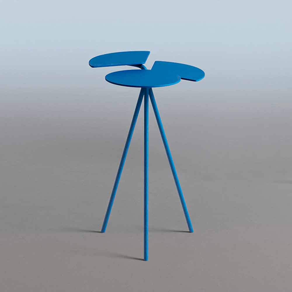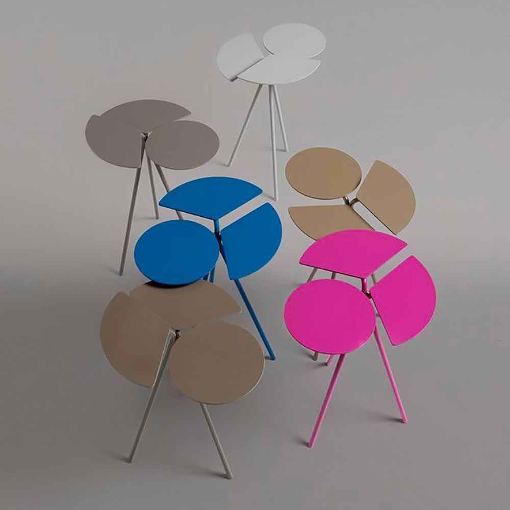 Runder dreibeiniger Couchtisch für das Wohnzimmer, modernes Design aus lackiertem Blech in verschiedenen Farben, originale Platte, hergestellt in Italien.