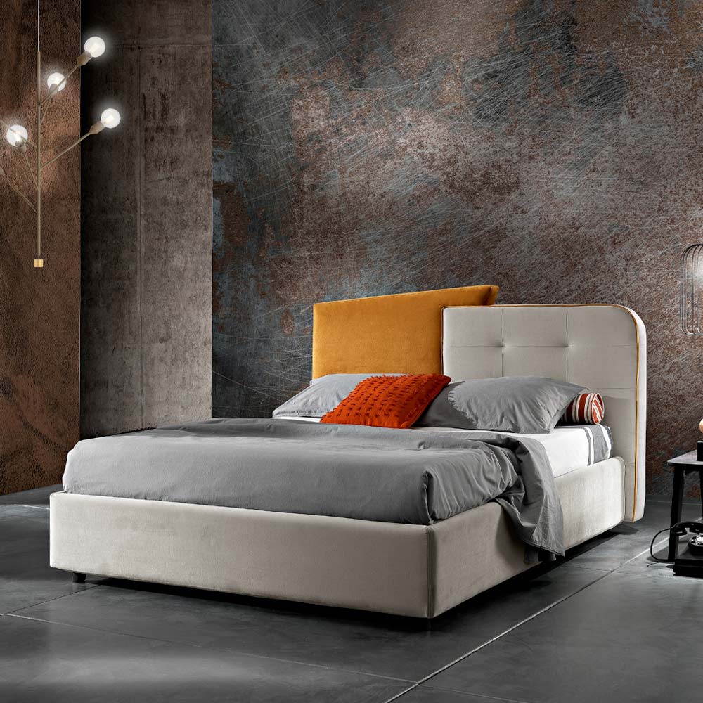 Gepolstertes Doppelbett mit Kopfteil in verschiedenen Ausführungen mit modernem Design made in Italy.