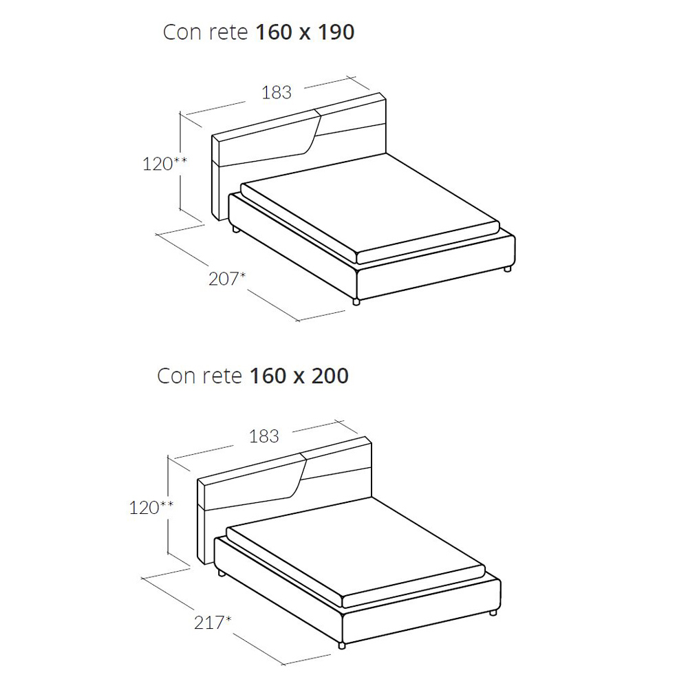 Der quadratische Bettrahmen ist 5 cm dick und genäht, nicht abnehmbar . Die Füße sind aus schwarzem Kunststoff , 8 cm hoch und ragen 7 cm aus dem Boden heraus. Netzwerk inklusive .