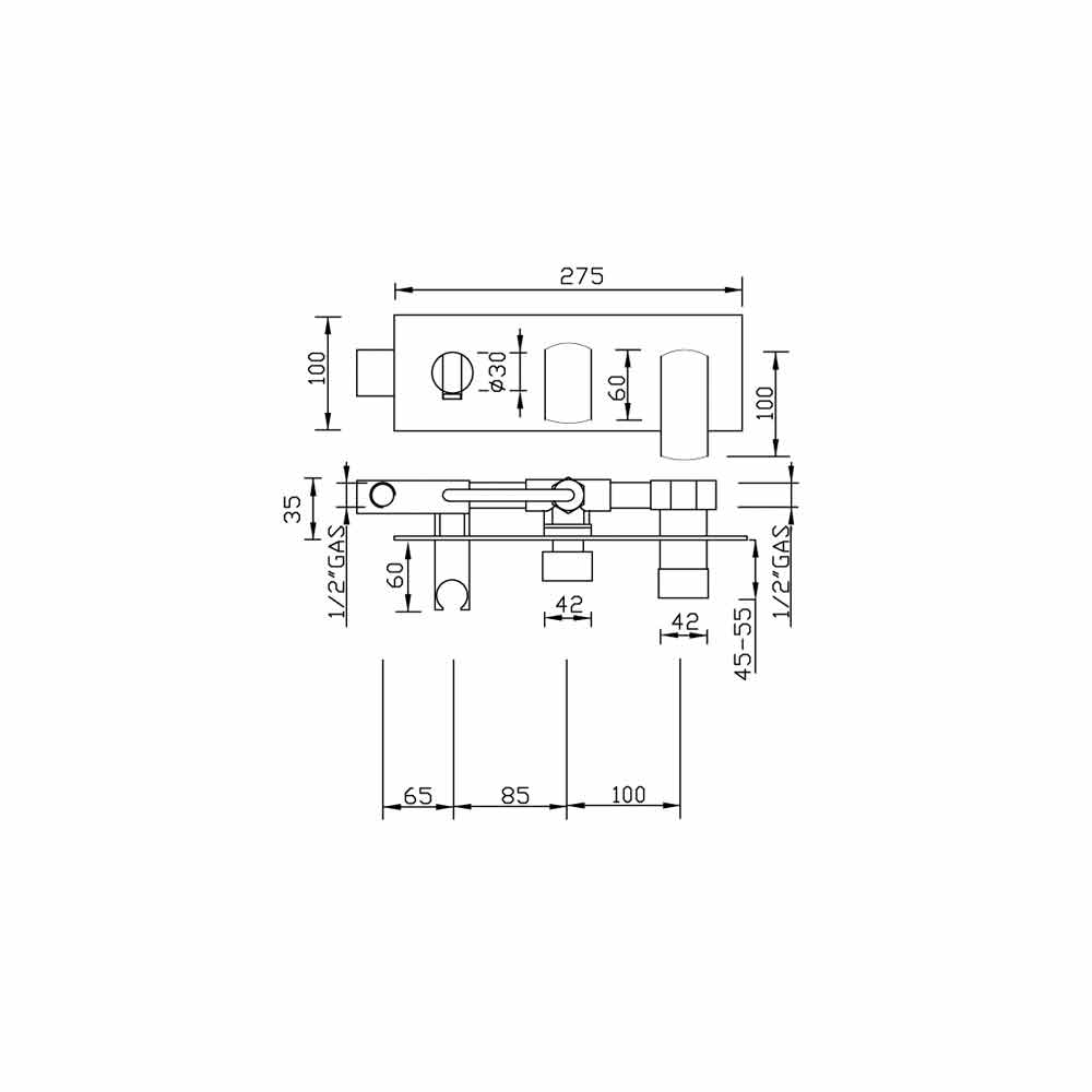 Eingebauter Duschmischer aus Messing, hergestellt in Italien.