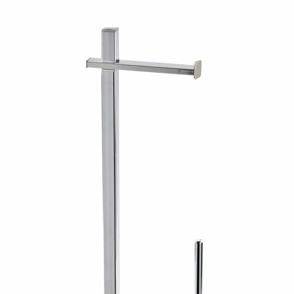 Moderne freistehende Rolle und Toilettenbürste aus verchromtem Eisen Made in Italy.