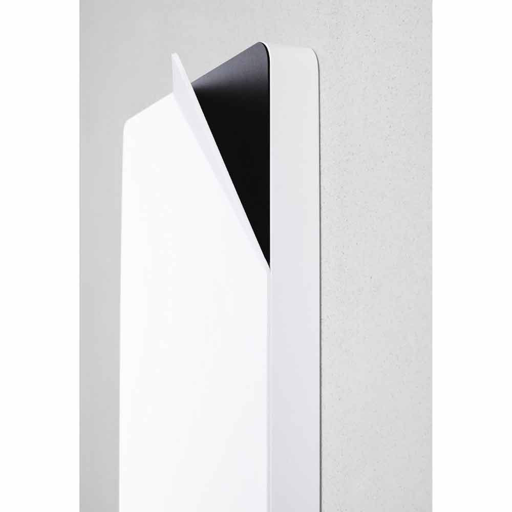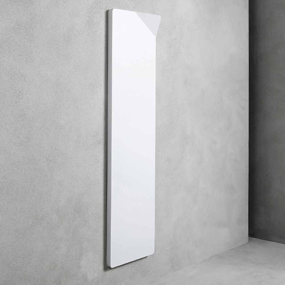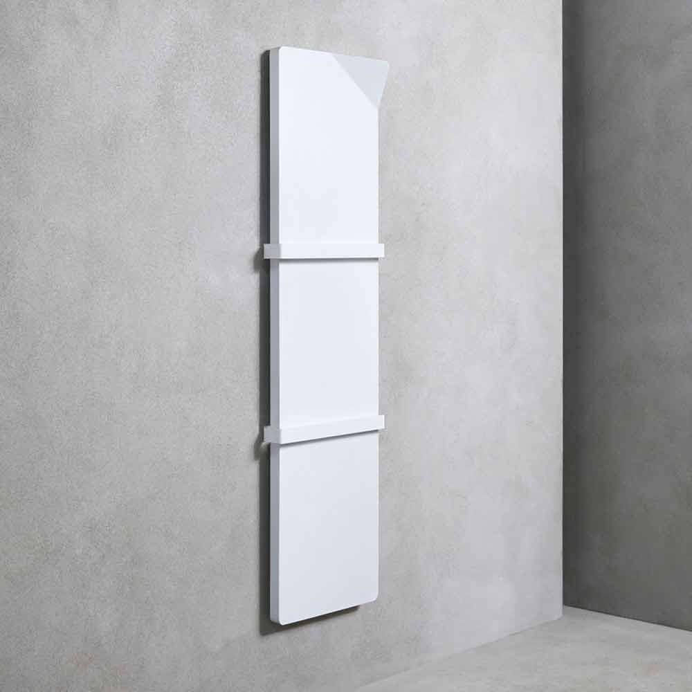 Diese elektrische Strahlungsplatte hat ein modernes und essentielles Design, das am Ende mit einer leichten Biegung verziert ist, um einen Effekt von purer Leichtigkeit zu erzielen.