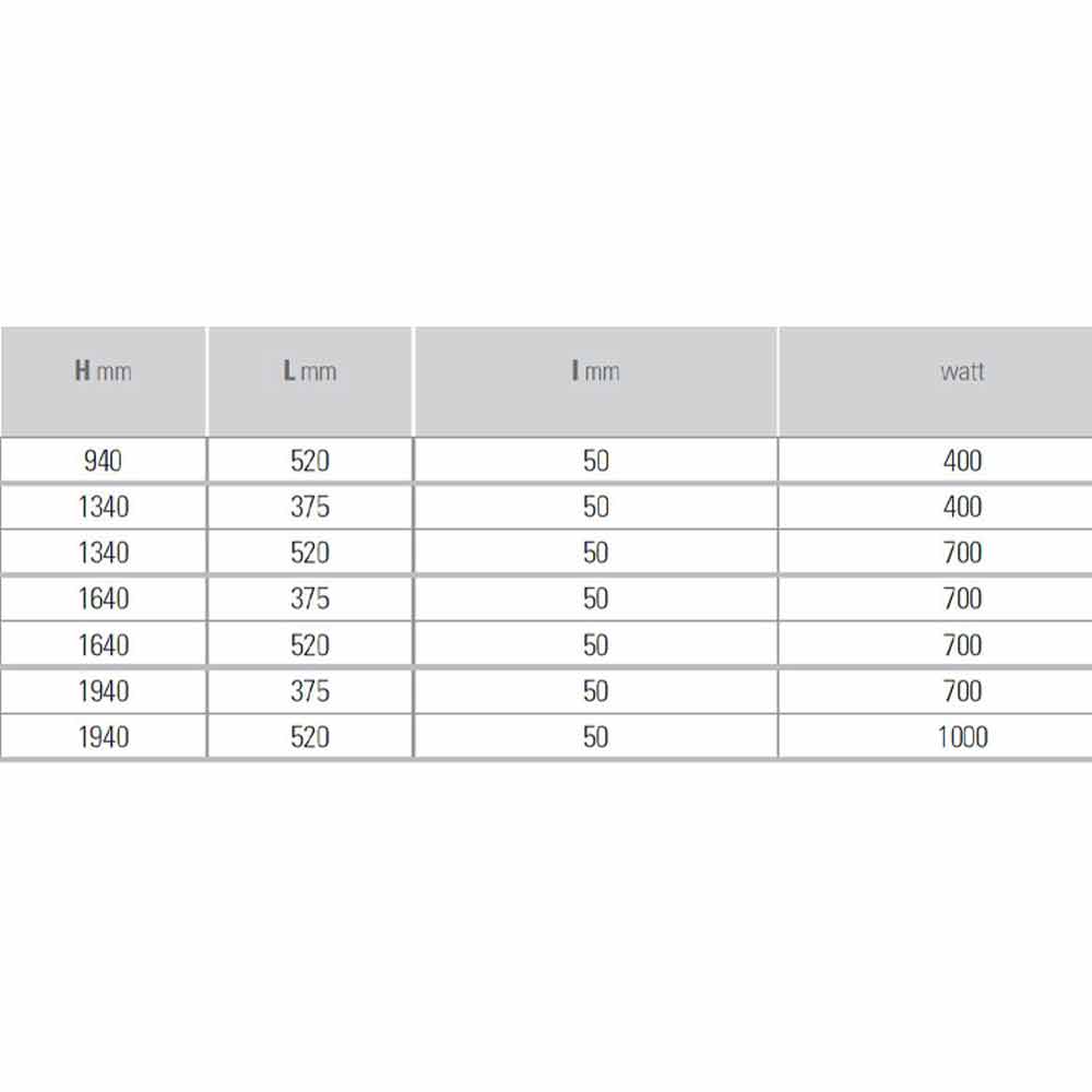 • H 1830 x L 375 x Inter. 50 x P 48 mm x Ausgang w 700;