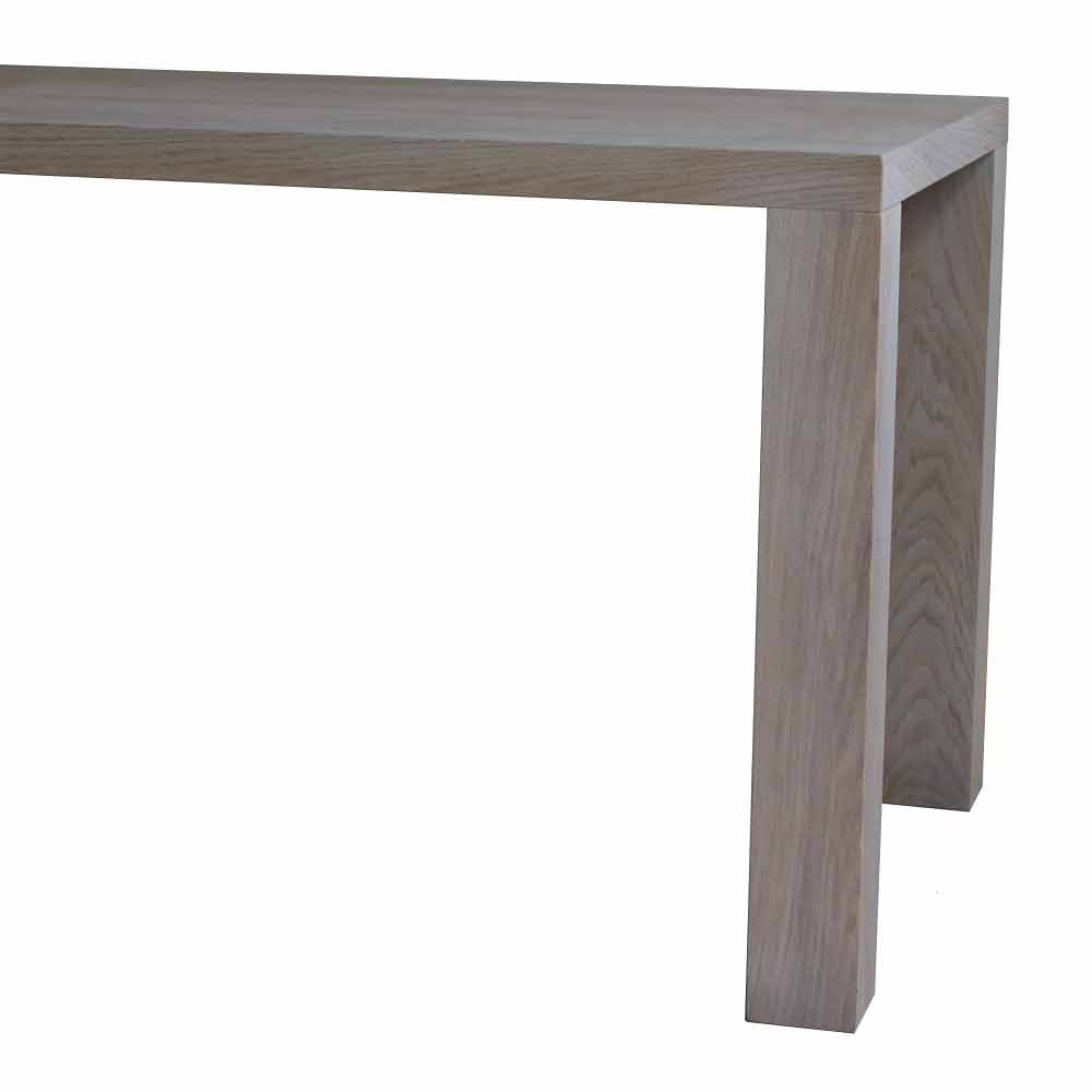 FEATURE: Decke: 4 cm starke Eichenholzplatte. Offenporig matt lackiert. Beine: Eichen-Tischlerplatte mit der Falttechnik. 10x10 cm Beinabschnitt.