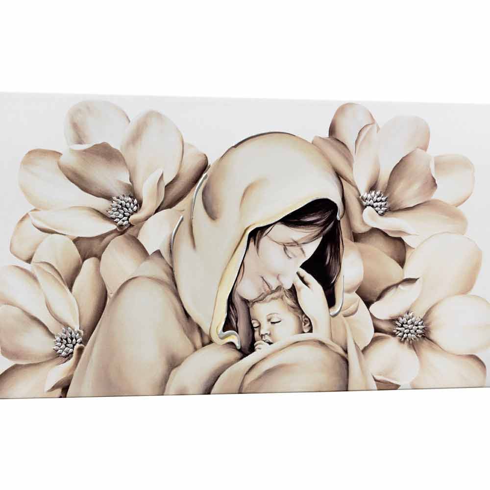 Original Gemälde, gefertigt von italienische Handwerker auf Leinwand mit ungiftigen und umweltfreundlichen Materialien, handdekoriert mit Reliefdetails in Silberblatt auf Harz.