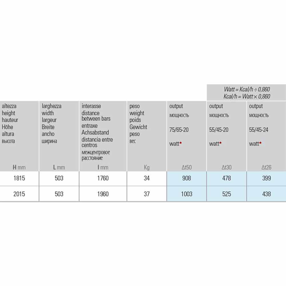 • H 1815 x L 503 x Inter. 1760 mm x Ausgang w (Δt50 *) 908; Ausbeute w (Δt30 *) 478; Ausbeute w (Δt26 *) 399