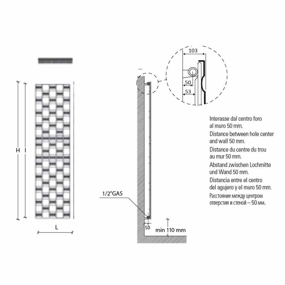 Vertikaler 5-bar-Wandheizkörper in einem modernem Design, hergestellt in Italien.