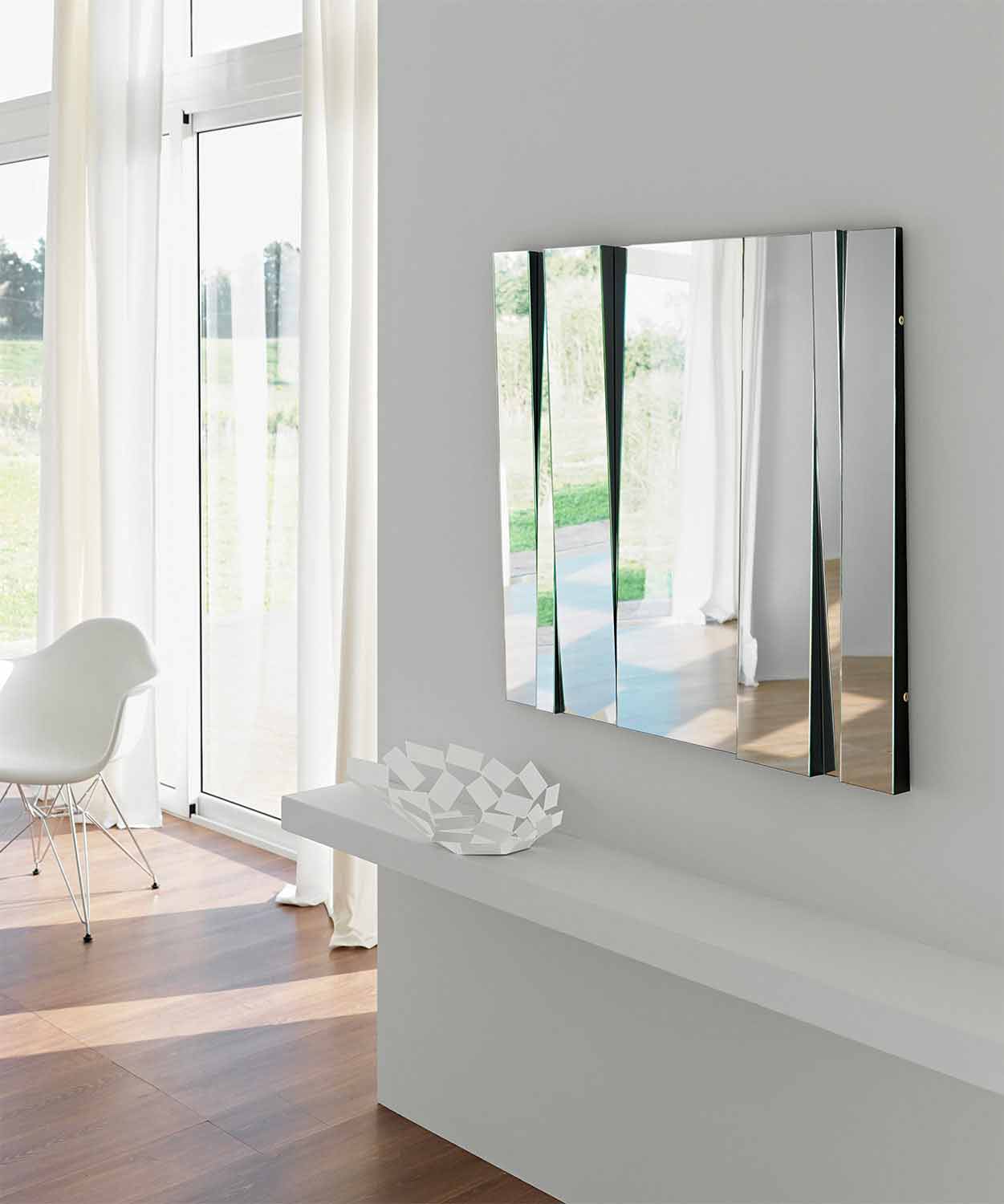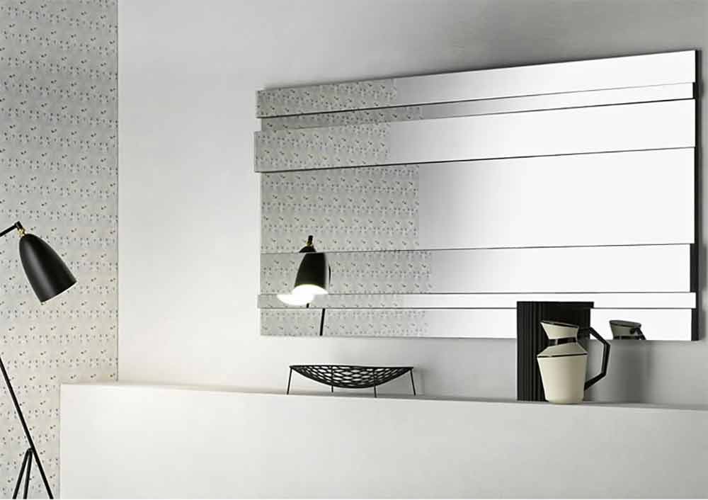 Dank seines innovativen Designs und des Wechsels von geneigten Spiegelbändern ist es perfekt, jede Art von Umgebung mit Stil und Eleganz auszustatten.