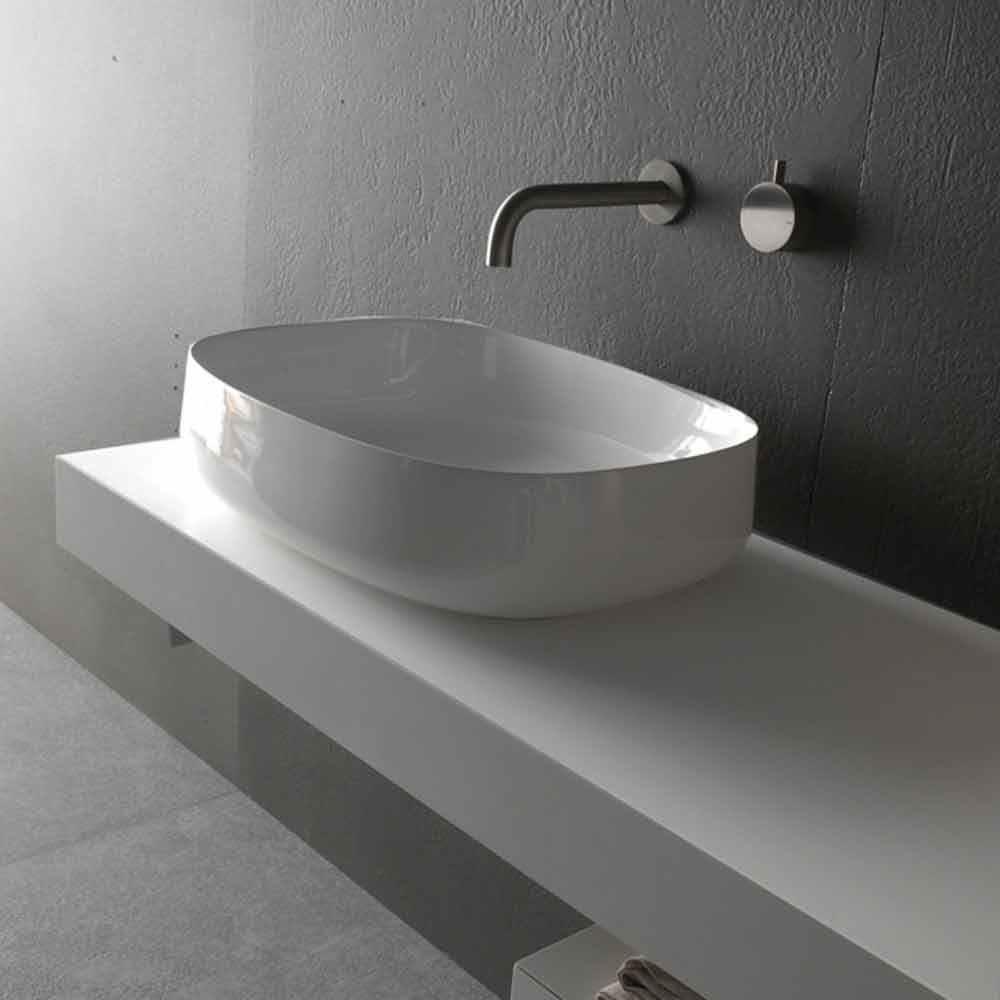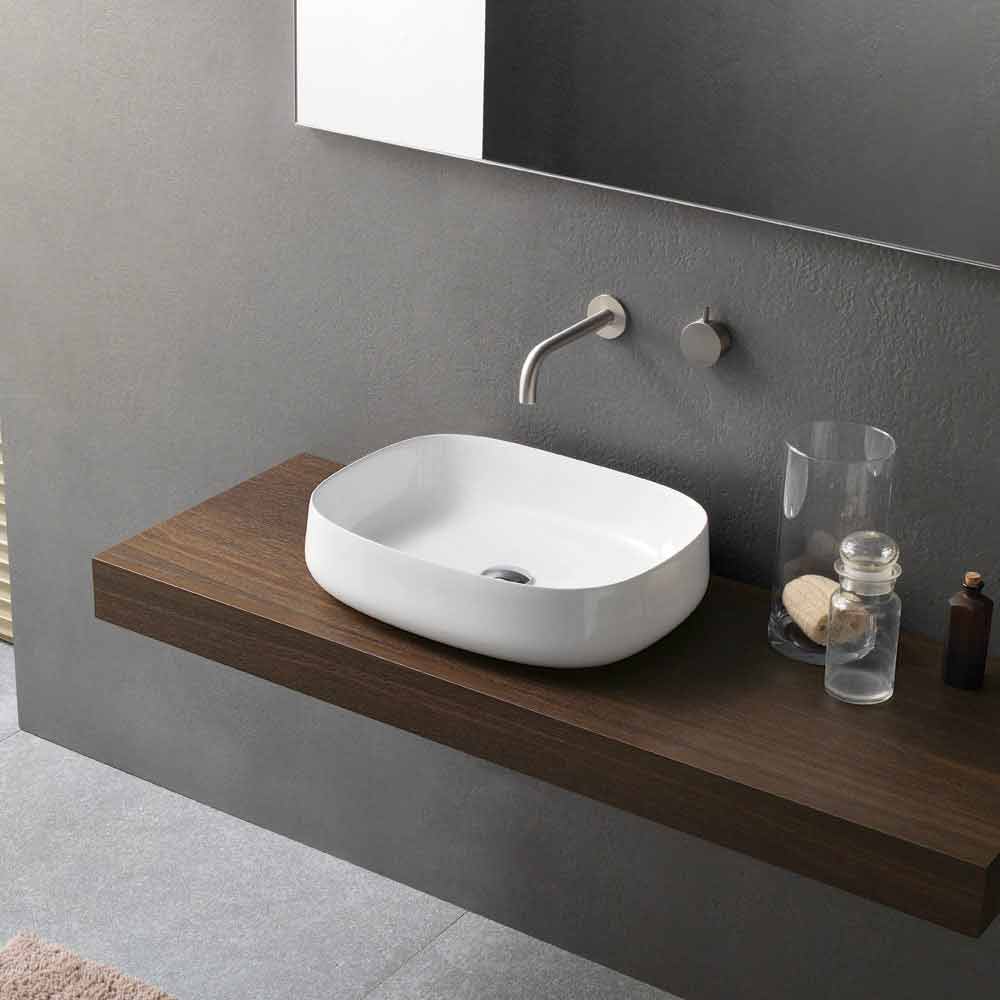 Modernes Arbeitsplattenwaschbecken, weißes Keramikdesign, hergestellt in Italien.