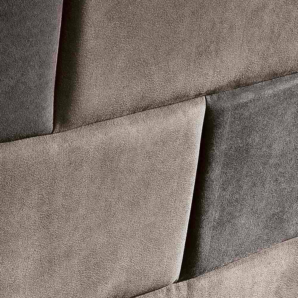 Das Gin -Designbett hat ein wichtiges Kopfteil, das aus einer Sektorsteppung mit zwei kontrastierenden Farben besteht, die einen geschmeidig gepolsterten Rücken kleiden. Die Essenz seines Stils liegt in dieser Abfolge wesentlicher Merkmale, in der Harmonie seiner Proportionen. Von vorne betrachtet wirkt es, als sei es mit der starken Absicht entworfen worden, zu überraschen.