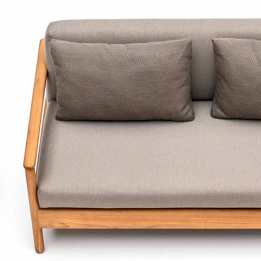Bali ist ein fantasctisches Gartensofa, das sich durch eine tragende Struktur aus massivem Teakholz von zertifizierten Plantagen auszeichnet. Die Sitze und doppelten Rücken sind mit Stoff bezogen und mit Dryfeel-Gummi gepolstert.