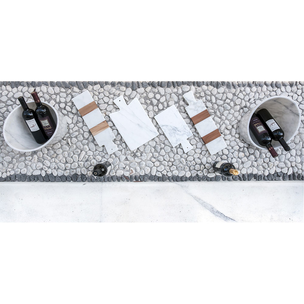 Modernes Schneidebrett aus weißem Carrara-Marmor im Design Made in Italy.