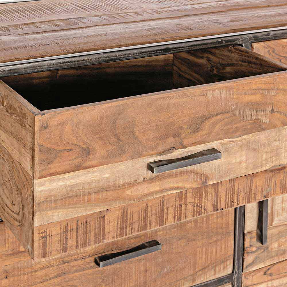 Industrielles Sideboard aus Akazienholz und Stahl.