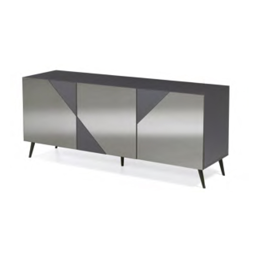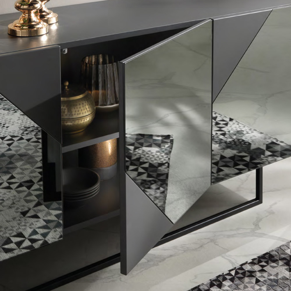 Modernes Sideboard aus Melamin und MDF mit Glaseinsätzen Made in Italy.