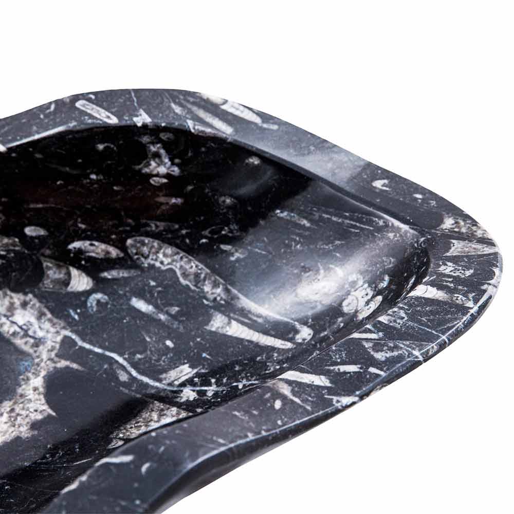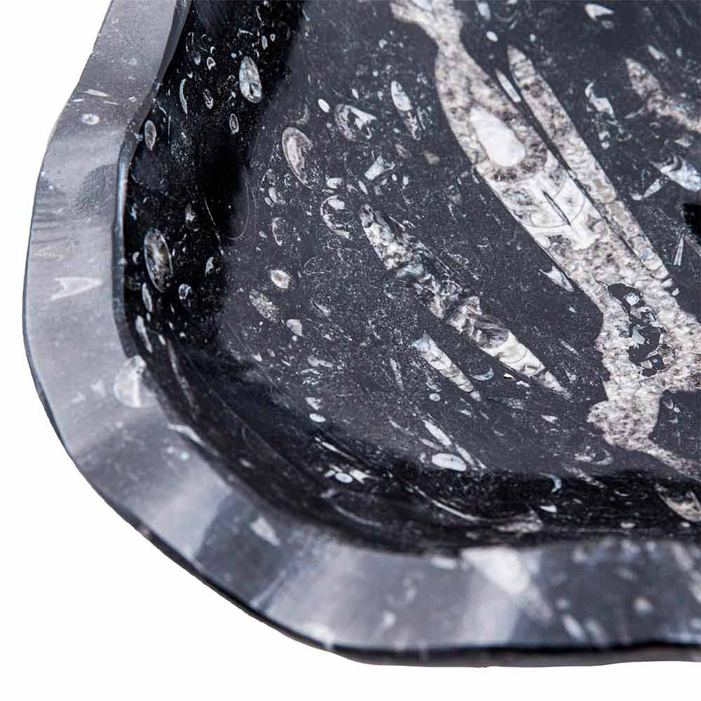 Das Burgeo-Waschbecken besteht aus Formen und Materialien, die bezaubern und faszinieren. Es ist vollständig in Marmor handgefertigt und enthält Fossilien aus Jahrmillionen.