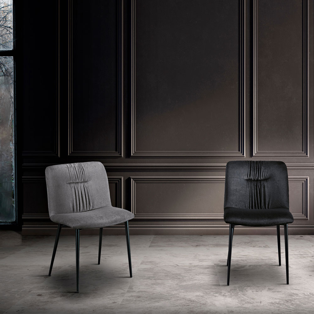 Verwandeln Sie Ihr Esszimmer in einen komfortableren und eleganteren Raum mit dem modernen Monocoque-Stuhl mit einer Sitzfläche, die mit pflegeleichtem Kristallstoff bezogen ist und in verschiedenen Farbvarianten erhältlich ist: