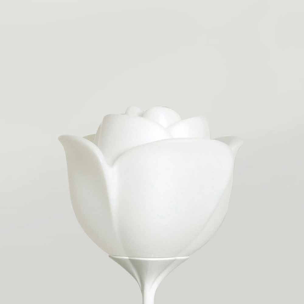 Die Baby Love Rose blüht auch draußen: im Garten, ihrem bevorzugten Platz, um Sommerabende romantisch zu beleuchten; oder auf dem Wasser, einsam, in Reihen oder in Gruppen, wie eine magische Seerose aus Licht, die auf Pools und Springbrunnen schwimmt und die Feiertage beleuchtet. Immer zart, suggestiv, unverkennbar.