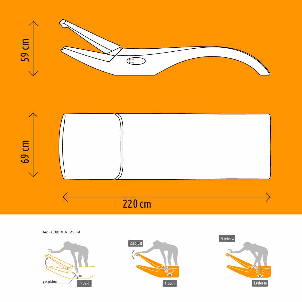 Ein raffiniertes, elegantes und hochwertiges Finish. Das Design von Zoe fügt sich harmonisch in das Rückenlehnenverstellsystem ein, das mithilfe eines Gaskolbens gelöst wird, der mit einem einfachen Knopf betätigt wird. Die Polyethylenhülle enthält vollständig verchromte Metallvorrichtungen, die eine lange Gesamtbeständigkeit gegenüber atmosphärischen Stoffen gewährleisten.