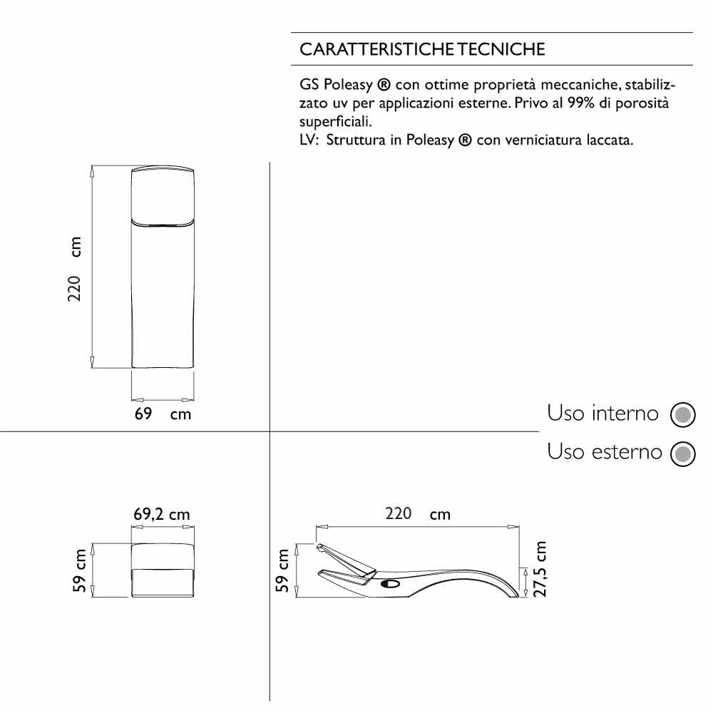 Mit der originellen, innovativen Zoe können Sie nahtlos von der Liege- in die Sitzposition wechseln. Zoe bietet eine große Auswahl an Farben und eine fantastische Vielseitigkeit: Es kann in offenen Räumen wie in geschlossenen Umgebungen eingesetzt werden, es leidet nicht unter Temperaturen von + 60 ° bis -20 ° und alle seine Metallgeräte sind vollständig aus Aluminium oder Aluminium 316 Stahl, um atmosphärischen Einflüssen problemlos zu widerstehen.