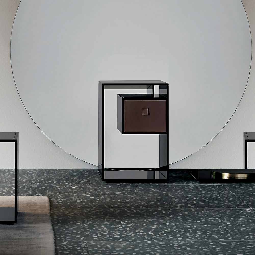 Hinweis: Die Schubladen in verschiedenen Ausführungen und die obere Ablage für die Schublade aus geätztem, verspiegeltem oder lackiertem Glas sind auf Anfrage erhältlich. Für ein kostenloses Angebot zögern Sie nicht, uns zu kontaktieren, indem Sie das Formular "Informationen anfordern" ausfüllen.