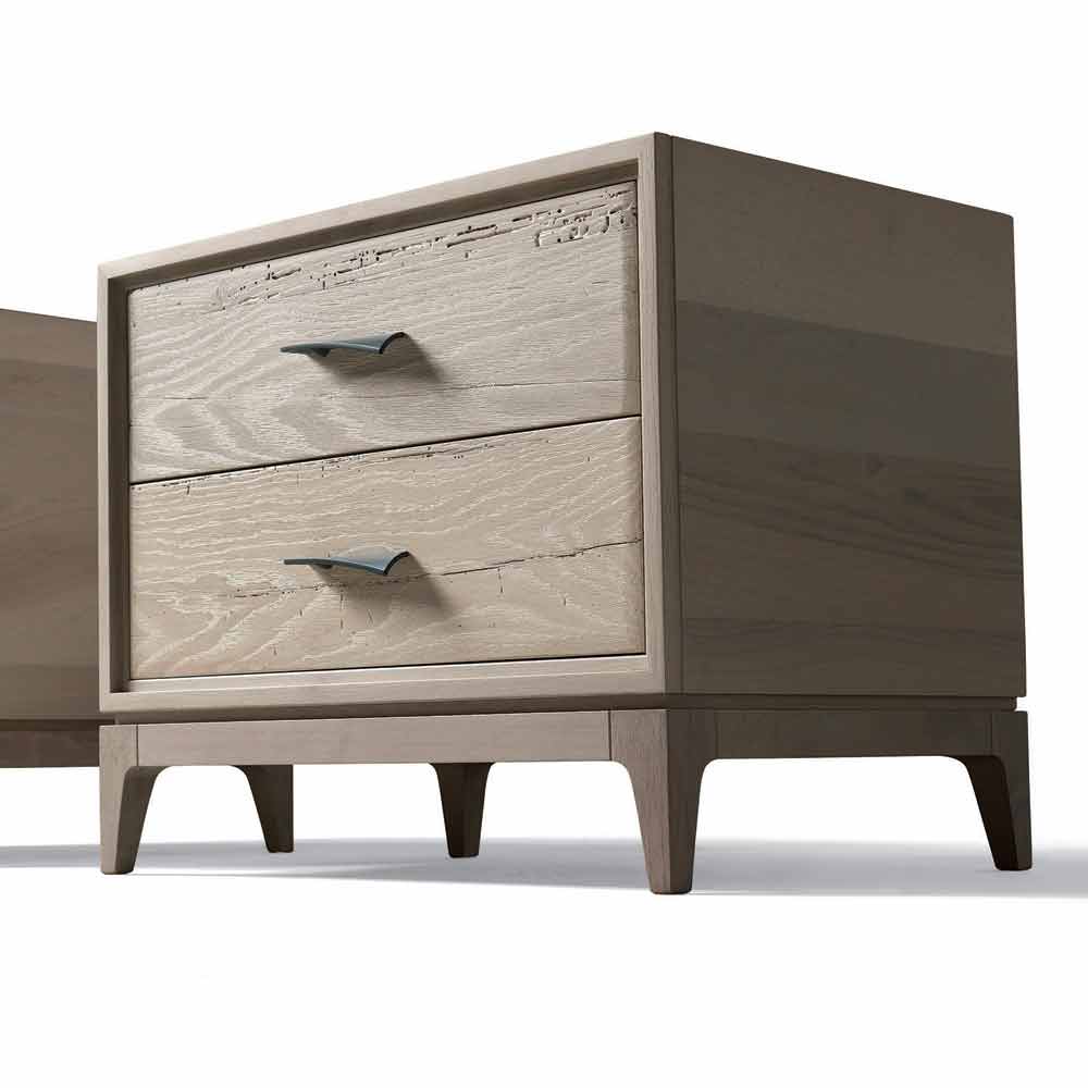 Moderner Nachttisch mit 2 Schubladen aus antiker Eiche, L.60xp.42 cm, Margo